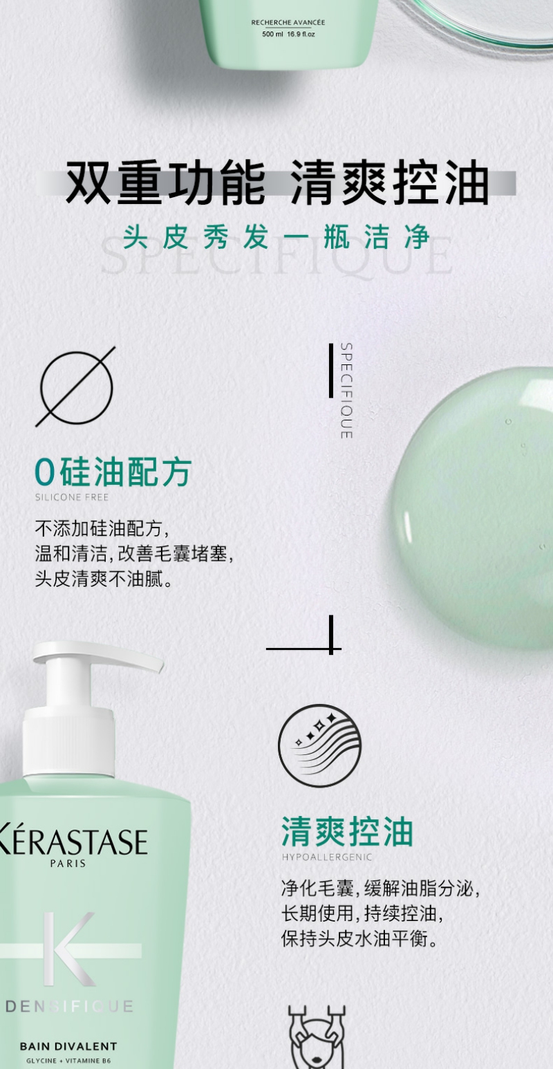 【YZ】卡诗双重功能洗发水去屑控油柔顺蓬松去油500ml