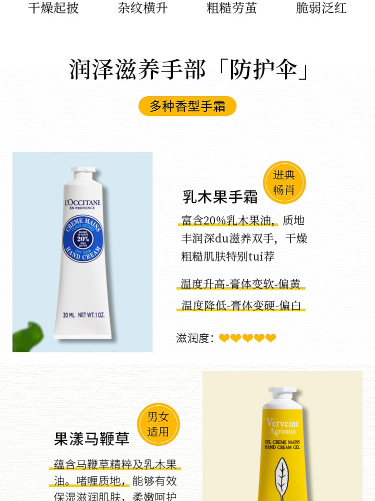【跨境】Loccitane 欧舒丹 护手霜三件套(乳木果护手霜30ml+橙花护手霜30ml+柠檬果漾马鞭草护手霜30ml)效期到27年10月