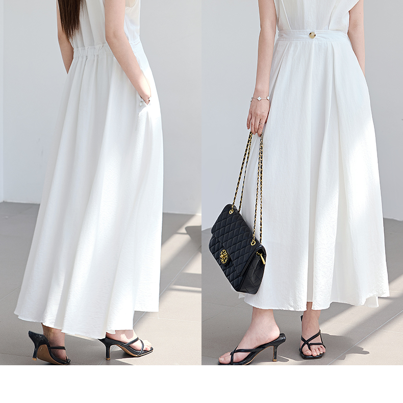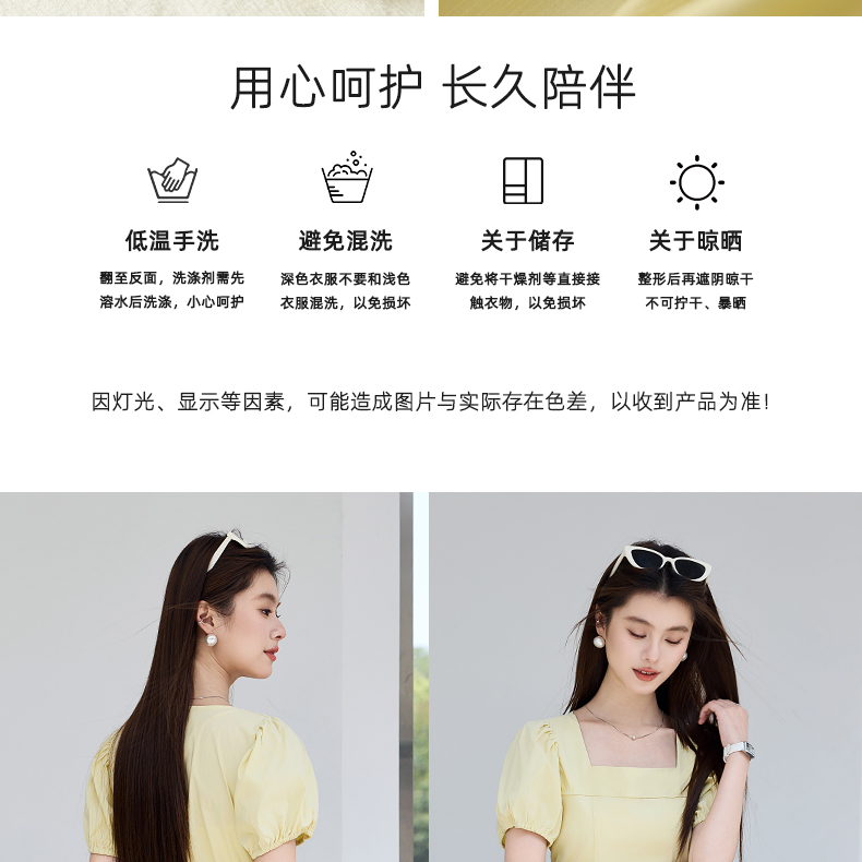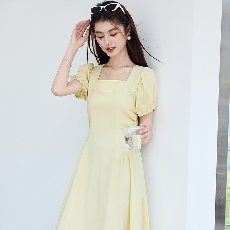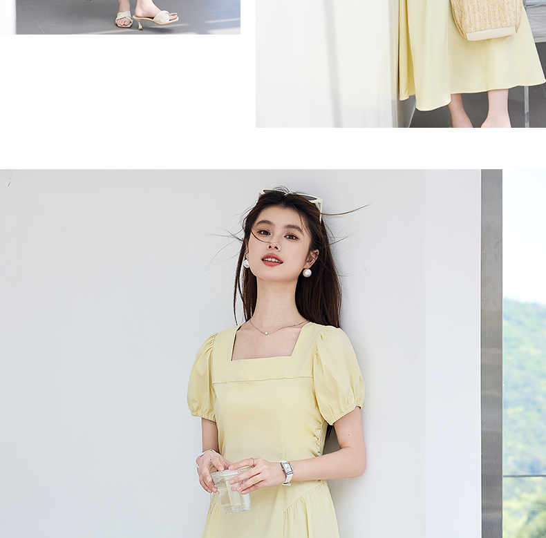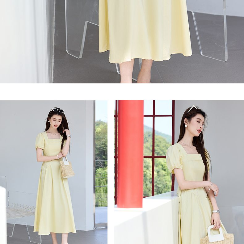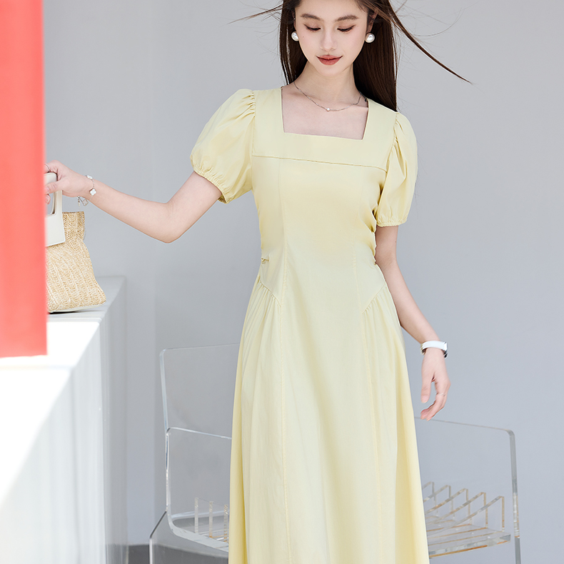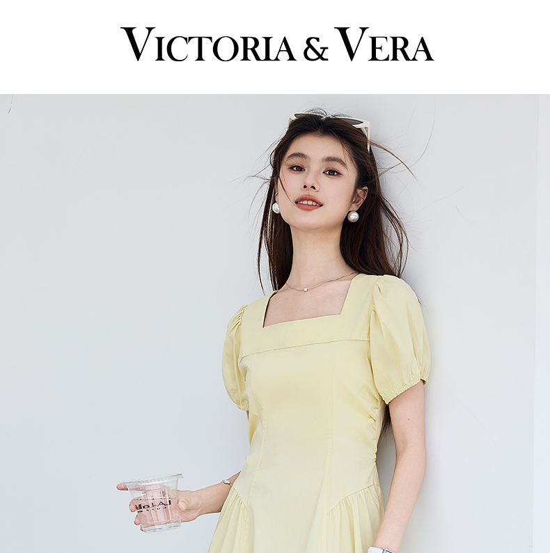VICTORIA&VERA夏季“黄油慕斯”系列法式方领连衣裙泡泡袖系带收腰显瘦通勤度假长裙---V9013L10