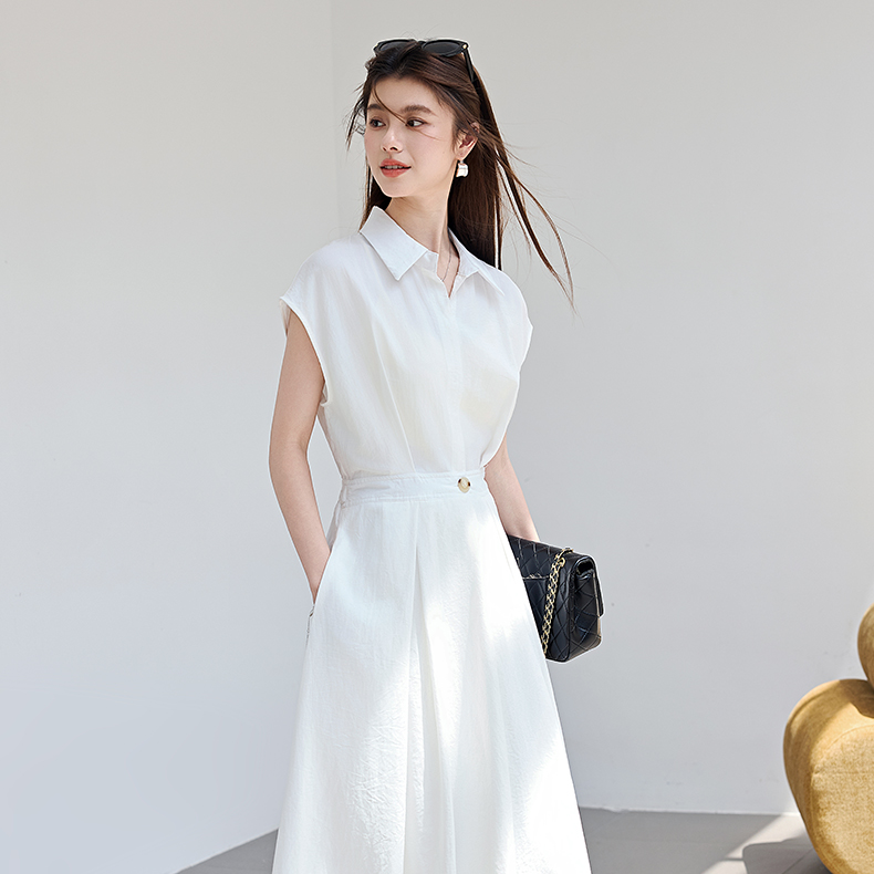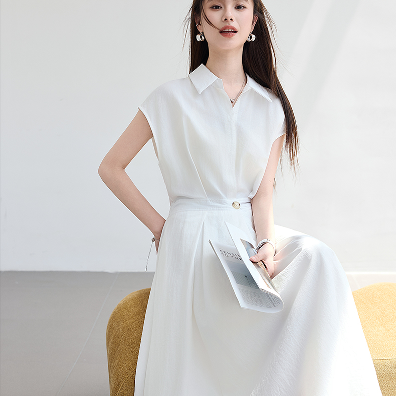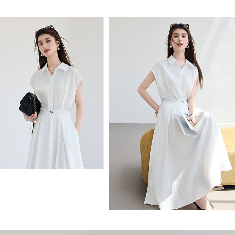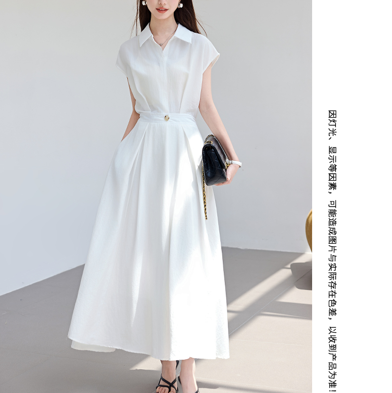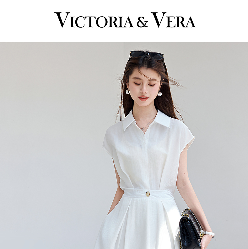 VICTORIA&VERA夏季“赫本新生代”系列插肩袖翻领连衣裙单排扣可解中长款显瘦通勤遮手臂职场裙---