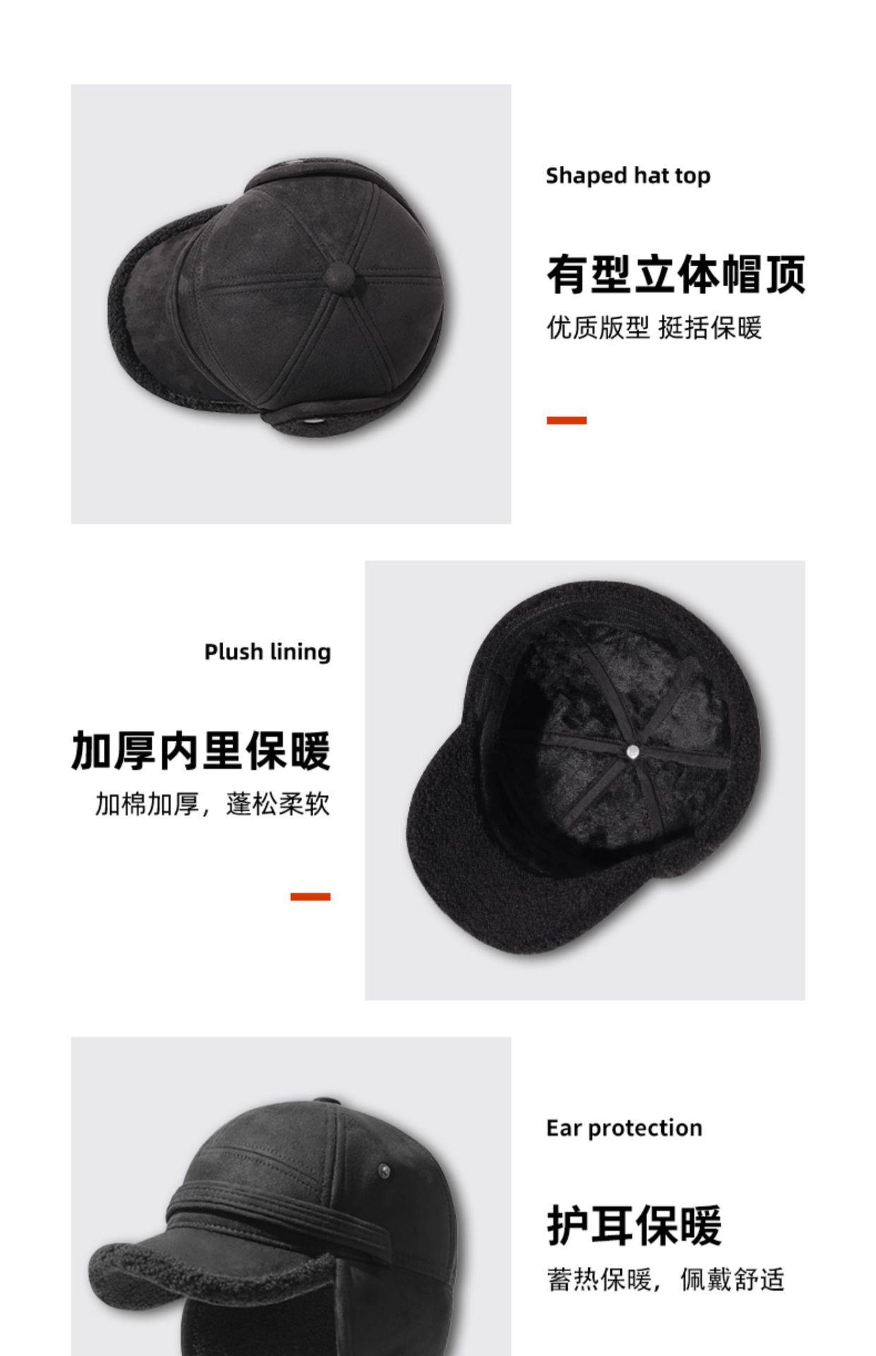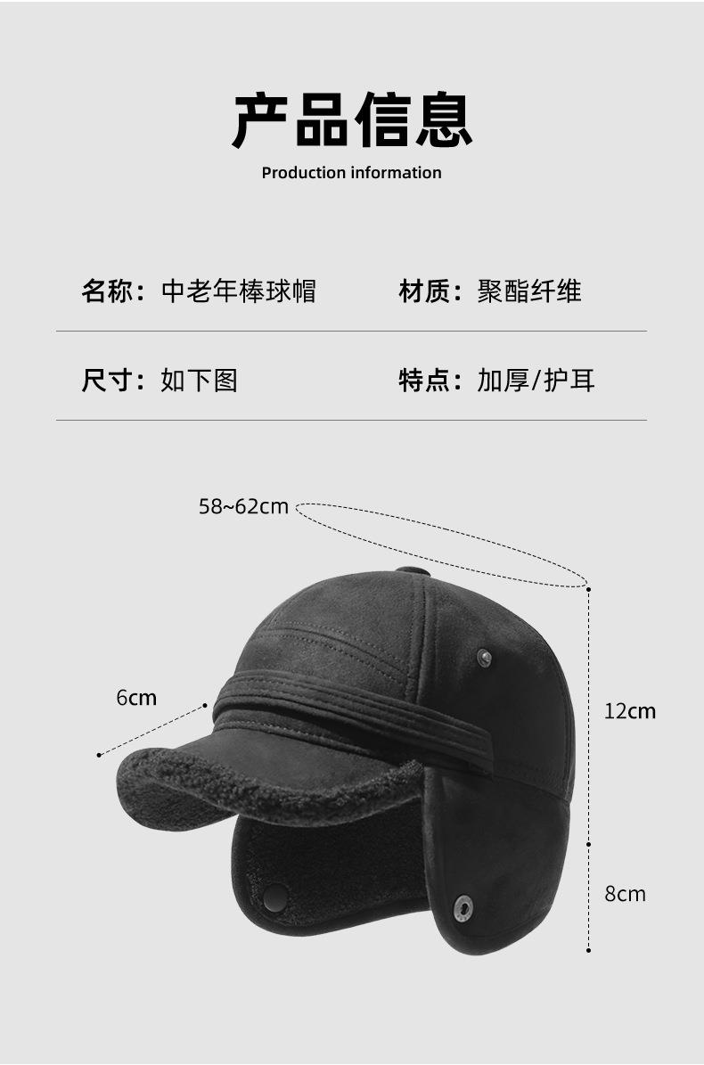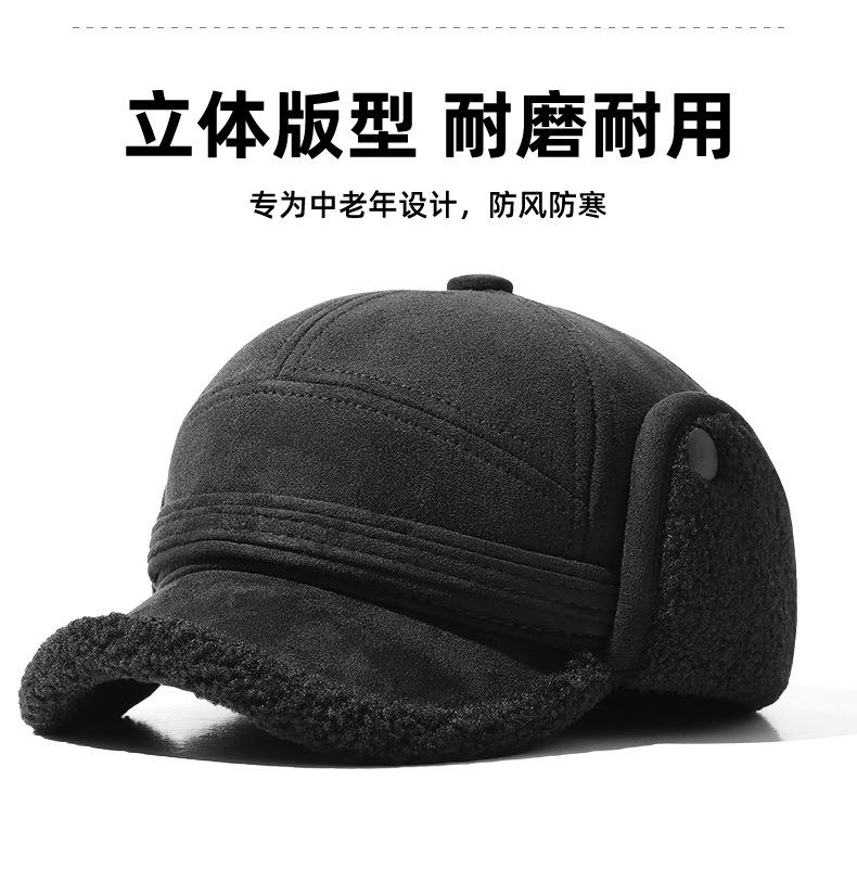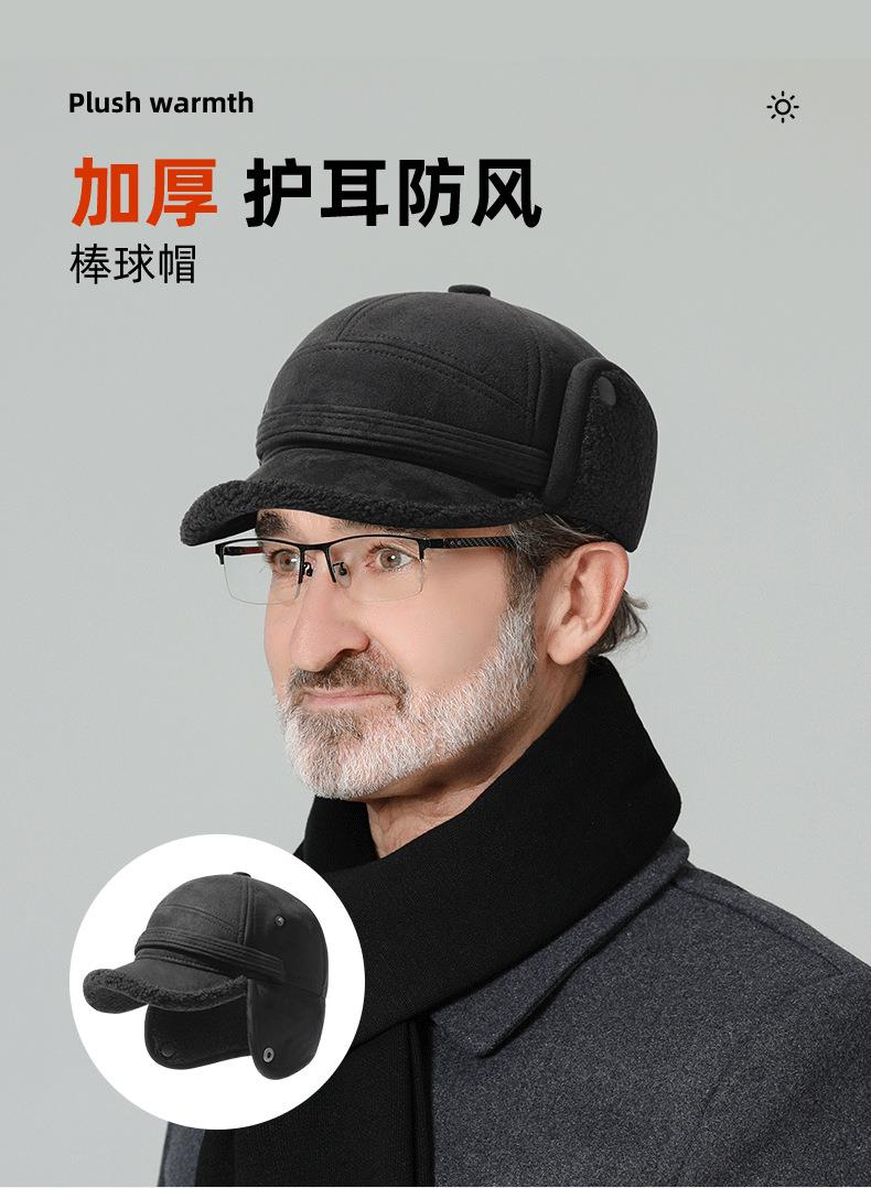 中老年帽子男款冬季爸爸保暖鸭舌帽骑车防风护耳加绒加厚防寒棉帽