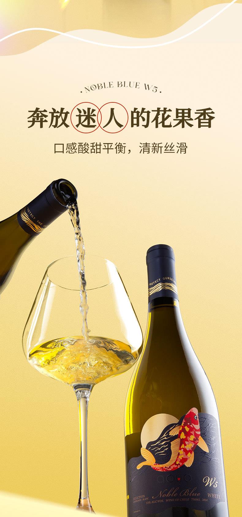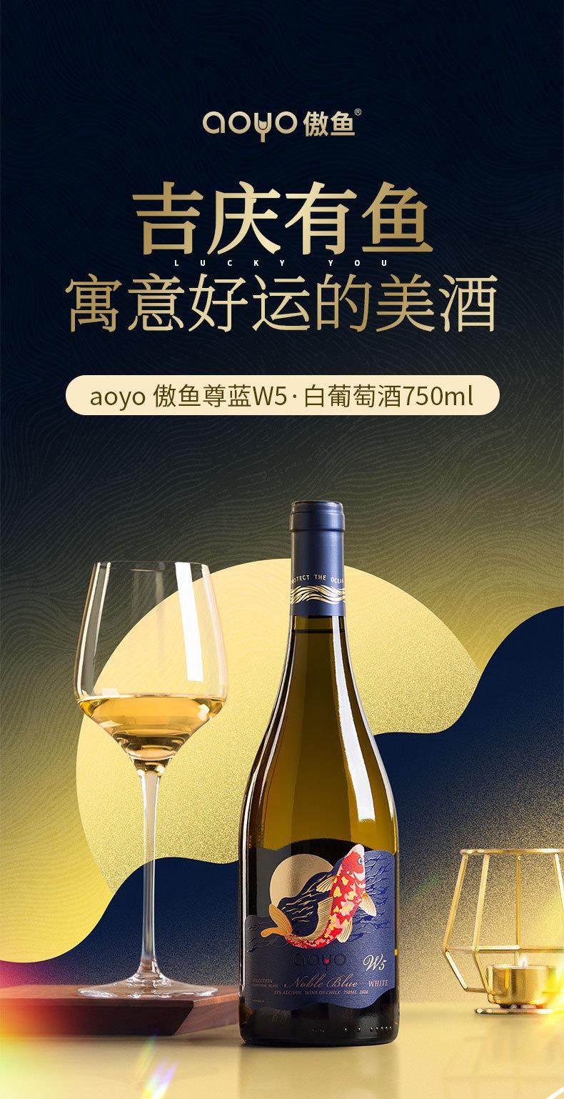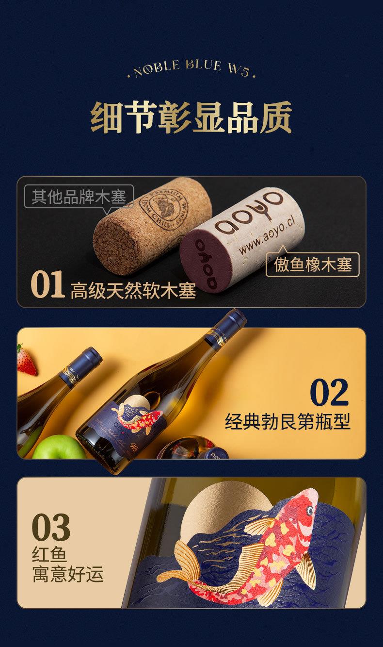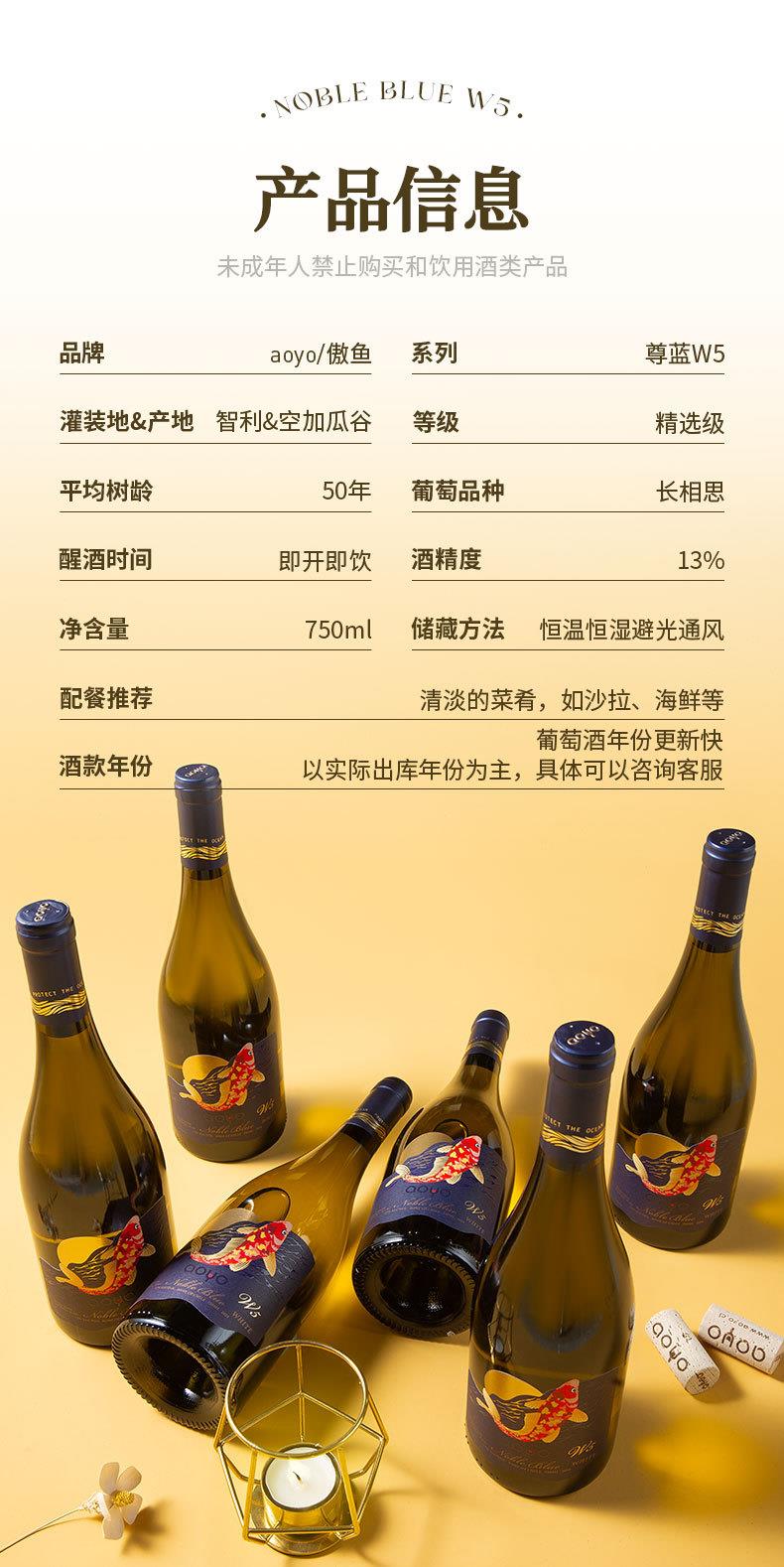 傲鱼智利原装原瓶进口红酒尊蓝W5干白葡萄酒水果酒整箱礼盒装