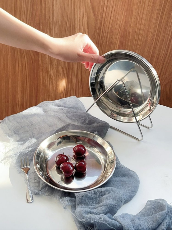☑️实用性强「租房党必入的 “抗造盘”」 “租房三年换了 N 套餐具,直到遇到这款不锈钢圆盘💸 ⚠️奥氏体钢材质耐造抗摔,搬家摔了两次都没变形,比陶瓷盘省了 N 笔钱 ⚠️大小正好,一人食到四人餐都能搞定。重点是!10 💰块钱不到一个,学生党、打工人闭眼囤,用坏了也不心疼~ ⚠️搭配沥水架,拯救厨房台面的 “积水杀手”,用完再也离不开!顺带收纳作用,沥干后直接收纳,告别乱糟糟,解决了租房最大的收纳难题,闭眼冲‼️