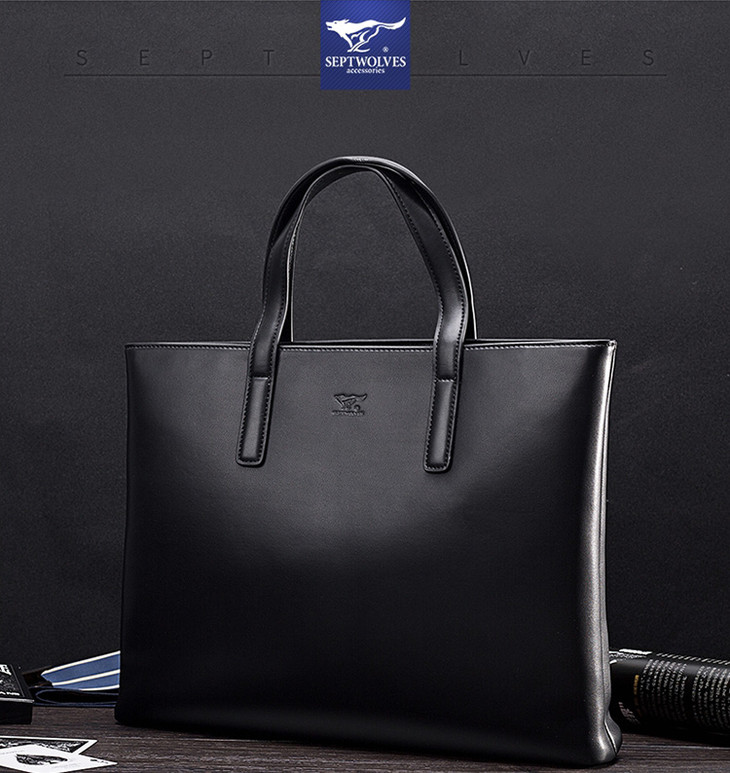 七匹狼公文包男士时尚背包 休闲手提包男士商务包斜挎单肩包 笔记本电脑包 1A1164183-01黑色