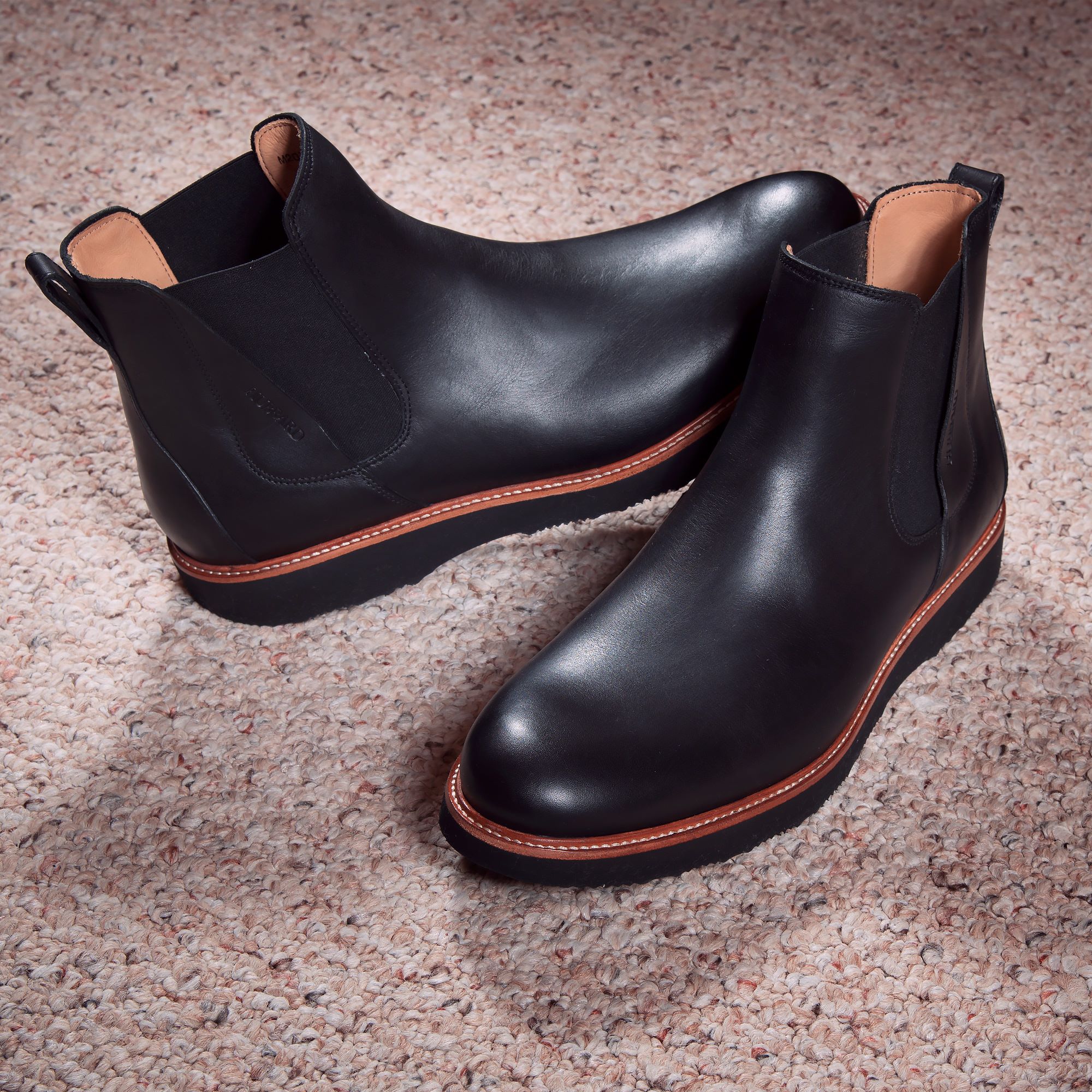 葡萄牙原产舒适轻便的高品质手工制作男士切尔西靴黑色M2170(超轻款一脚蹬款)