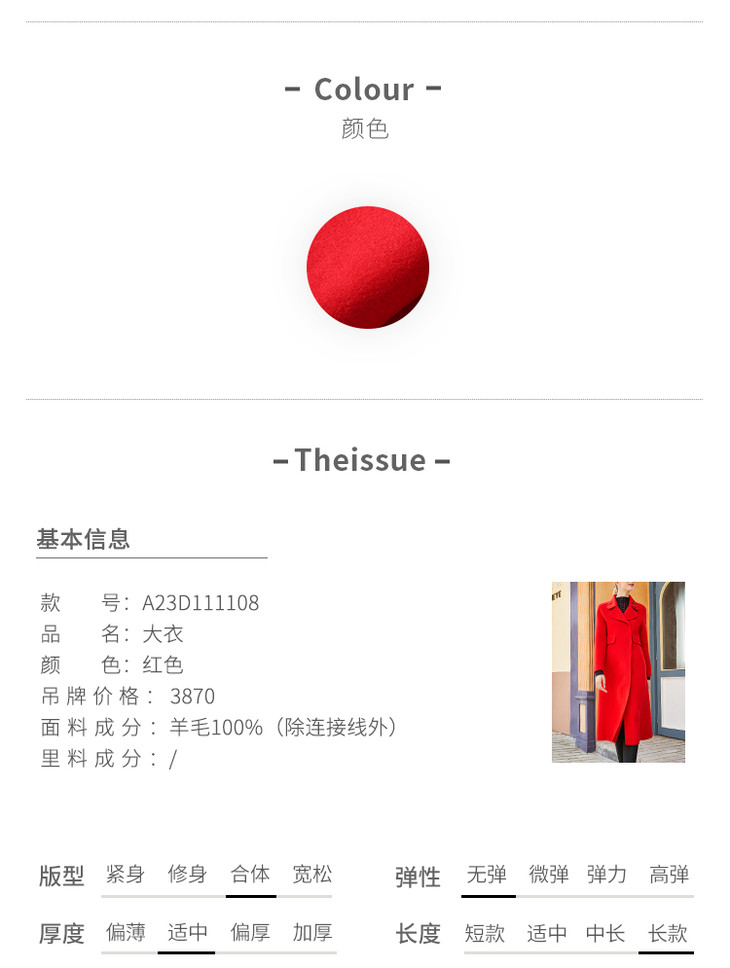 【特价不退换】阿菁娜澳洲羊毛手工缝制爆款热卖双面呢大衣A23D111108