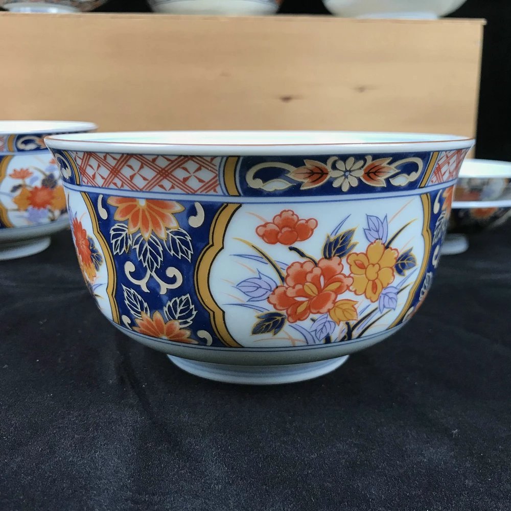 日本库山窑彩绘碗碟套装共10枚 保留原木盒 实物见视频