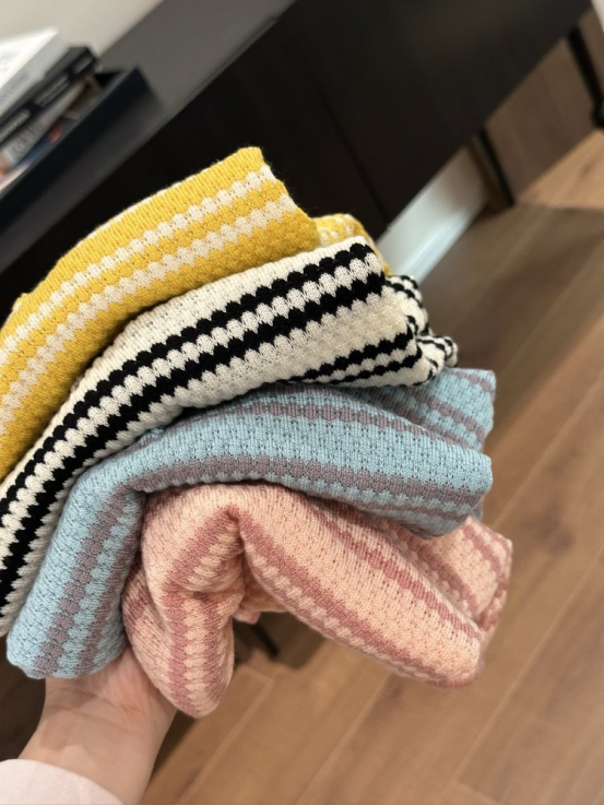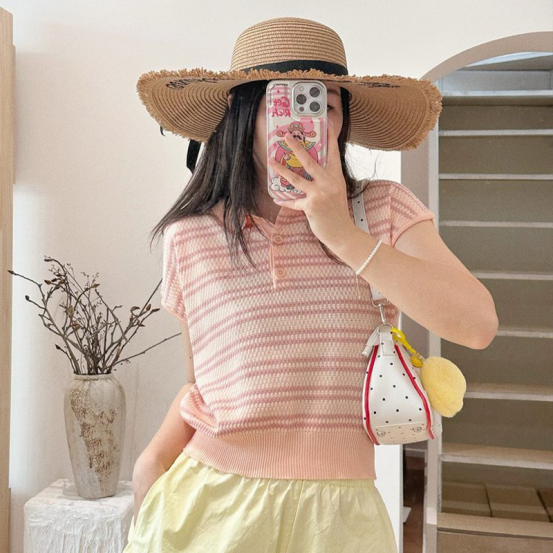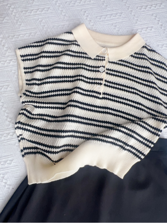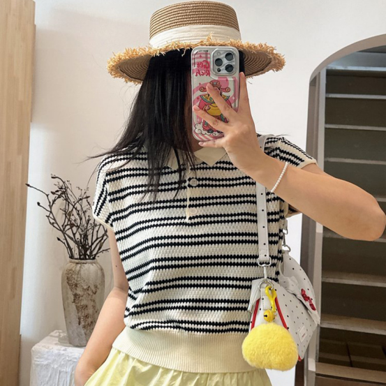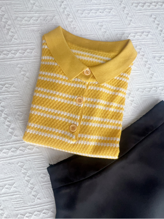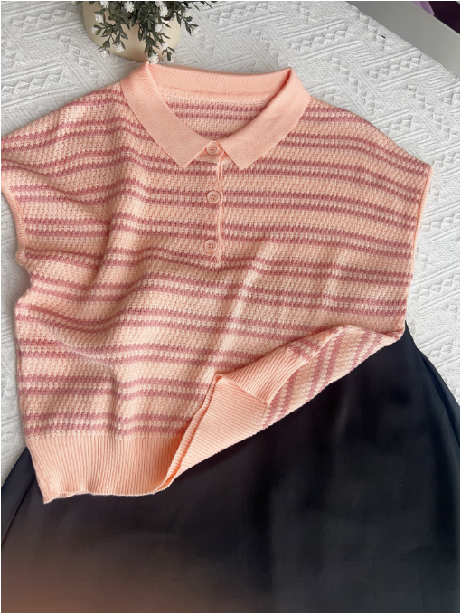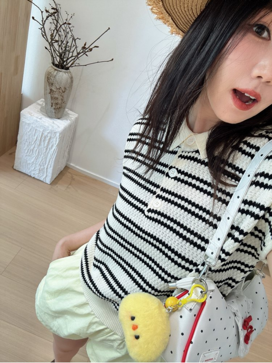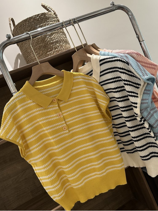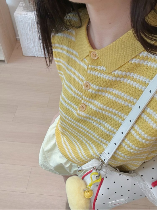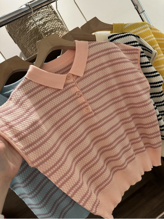 💥【MOMOTIABIN翻领半系扣条纹T恤YMC170】🌻不废话!没有任何套路!💗 韩系小翻领飞飞袖针织衫!✨ 超值!必入啊 宝子们!