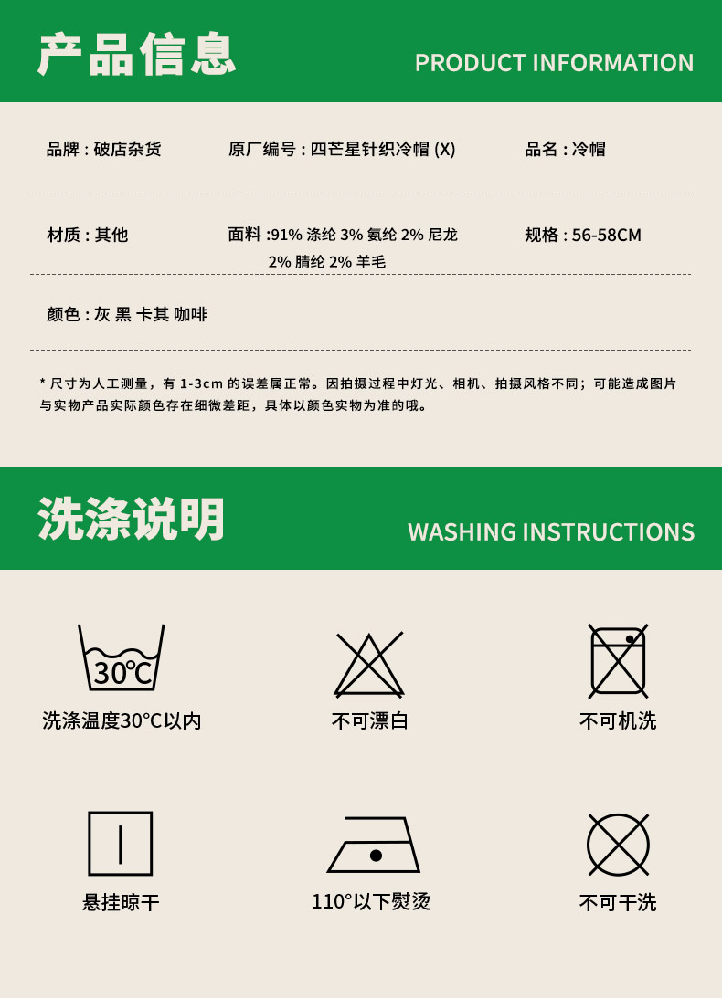 时尚百搭四芒星针织冷帽-纪念日百货门店同款165201214