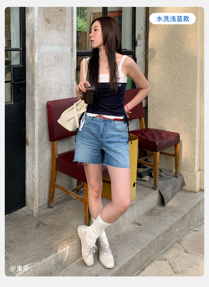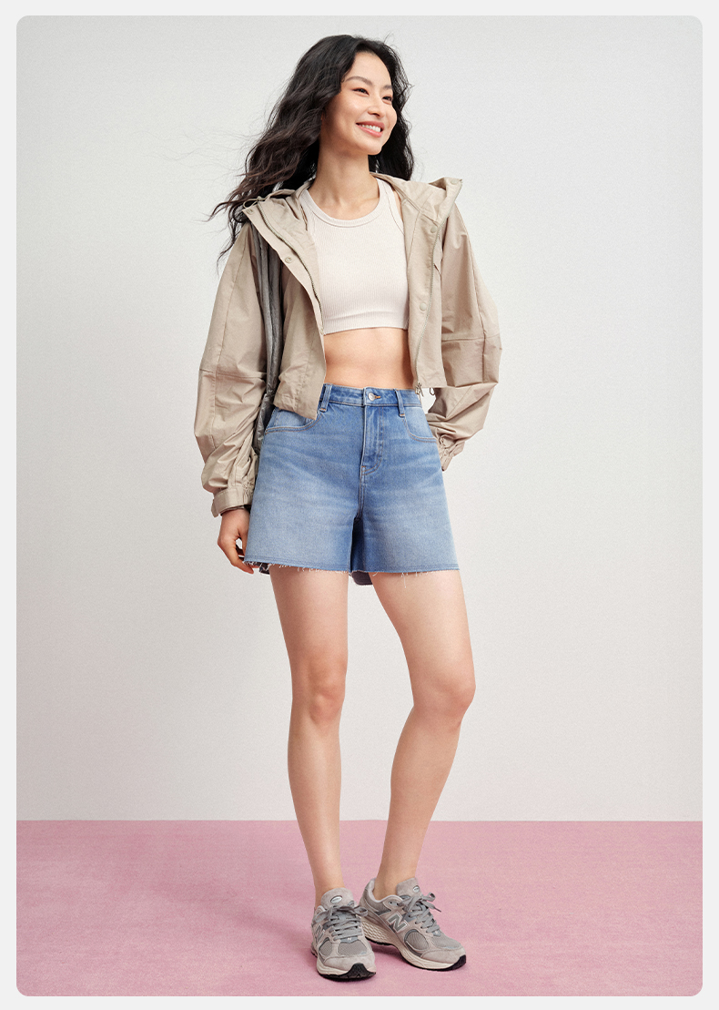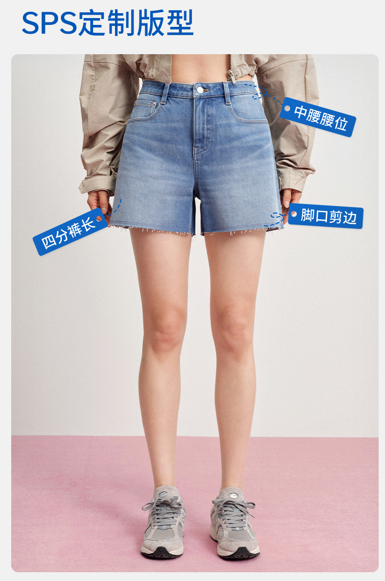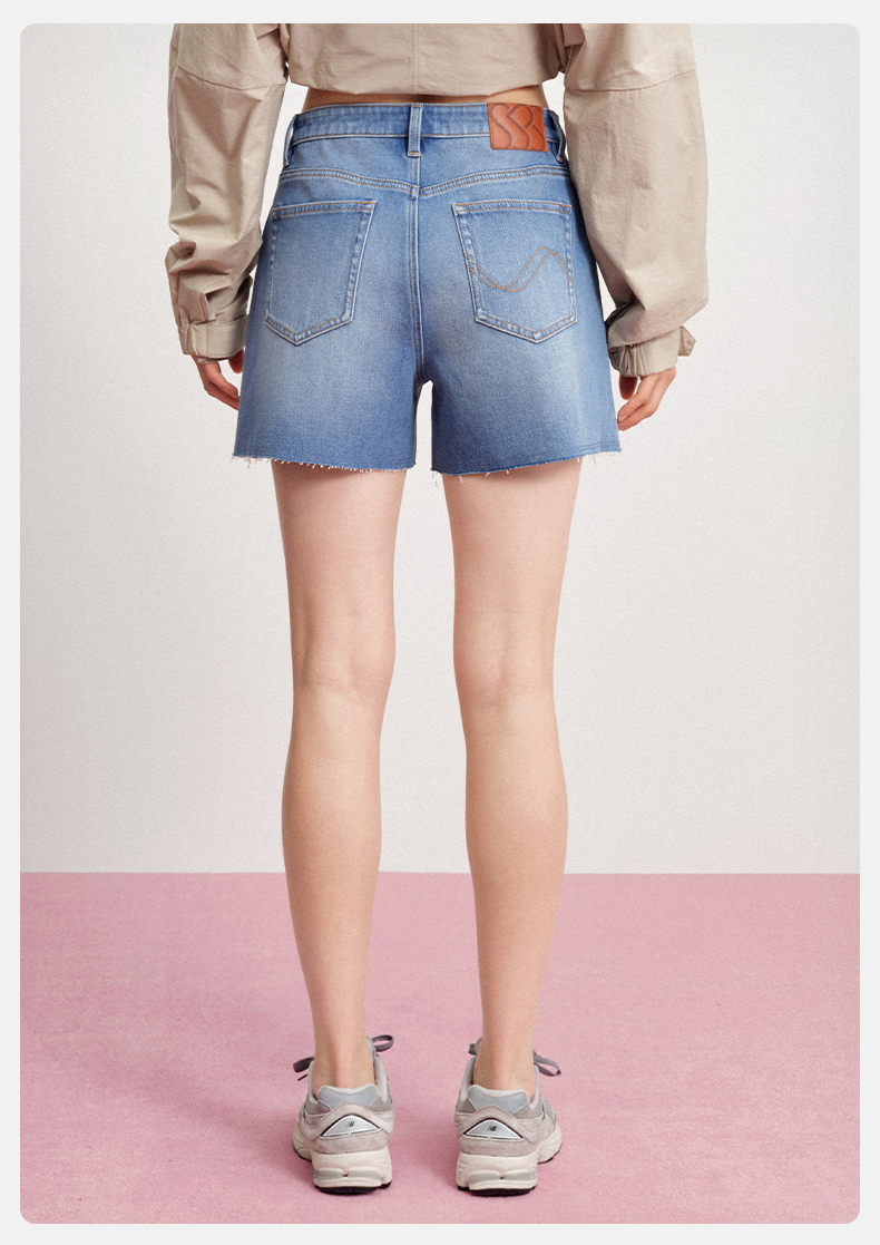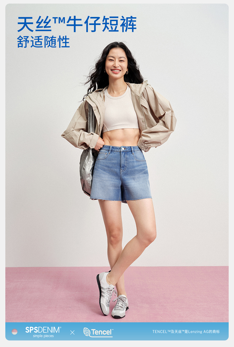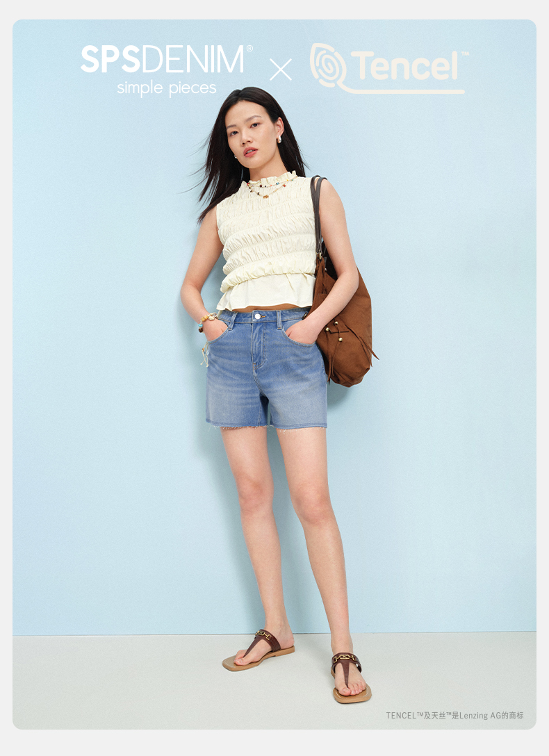 【天丝牛仔短裤】simplepieces夏新款SPS牛仔四面弹剪边四分裤女