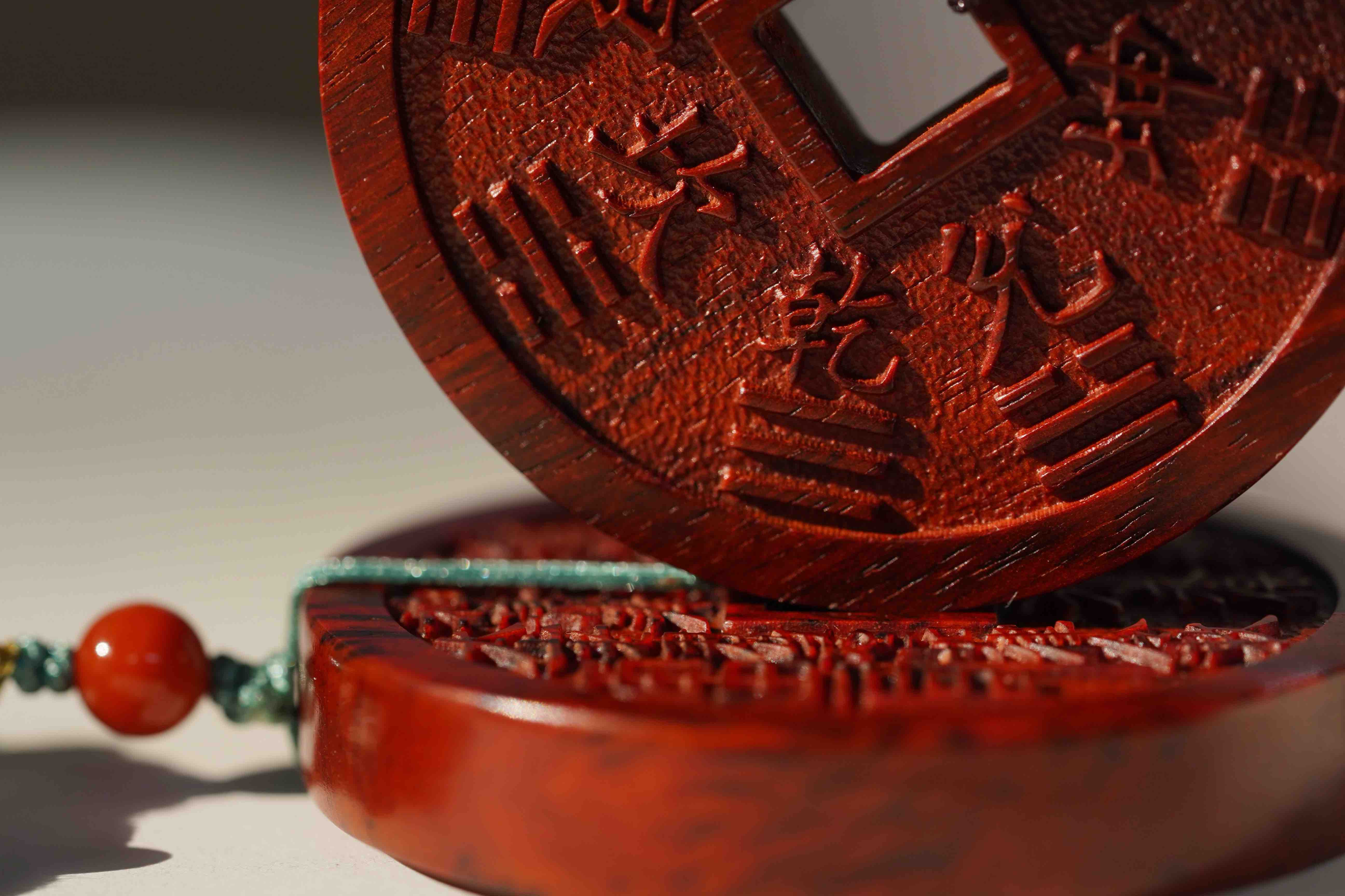 一面是八卦,一面是字,辟邪招财。