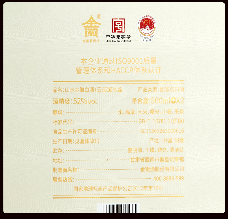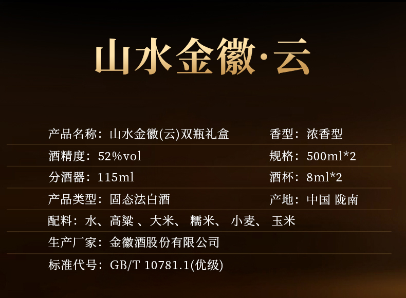 【云双瓶礼盒】金徽酒 52度山水金徽·云 白酒礼盒