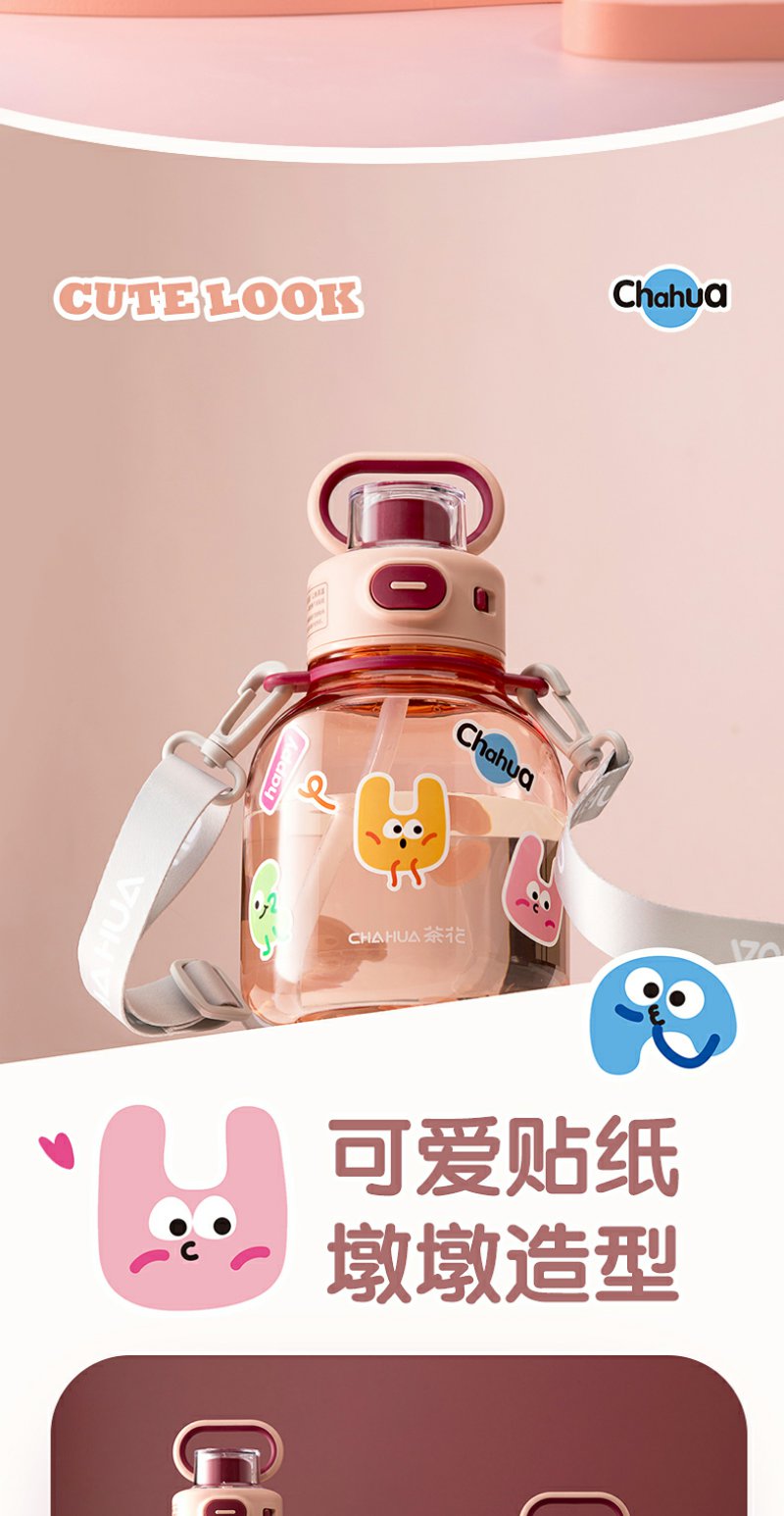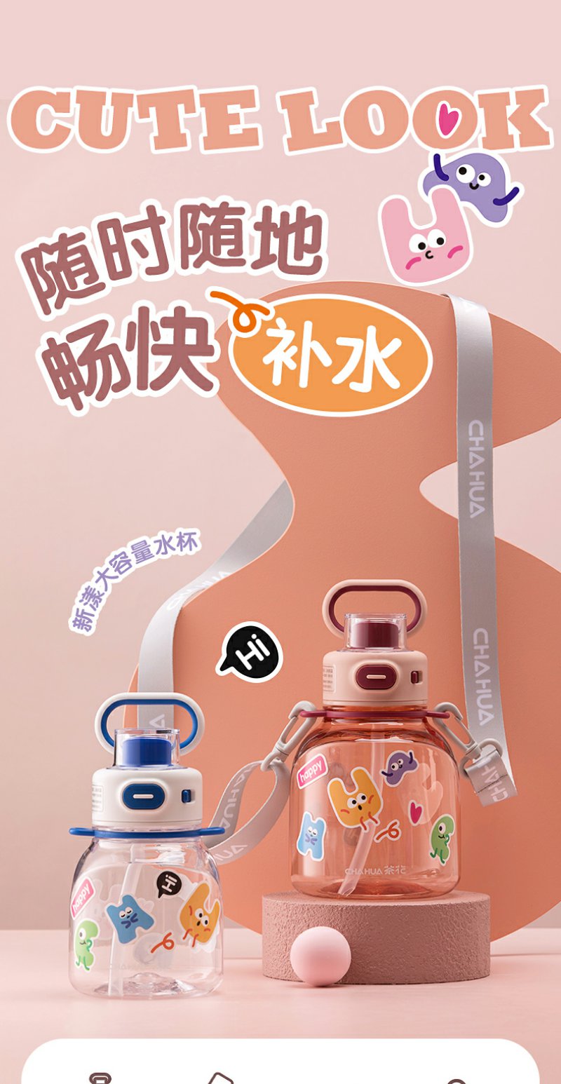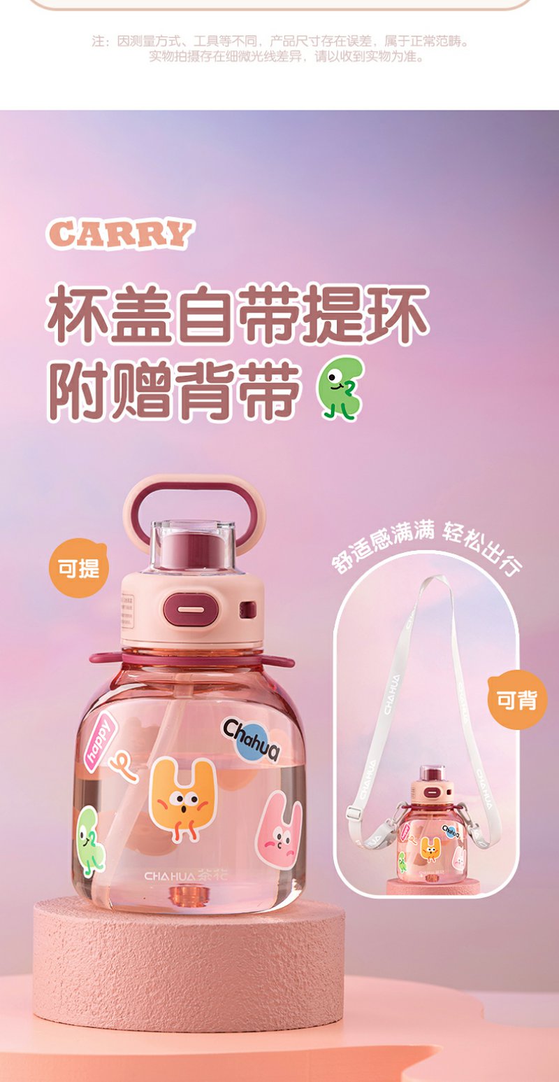 【茶花】大容量墩墩塑料水杯送贴纸送背带