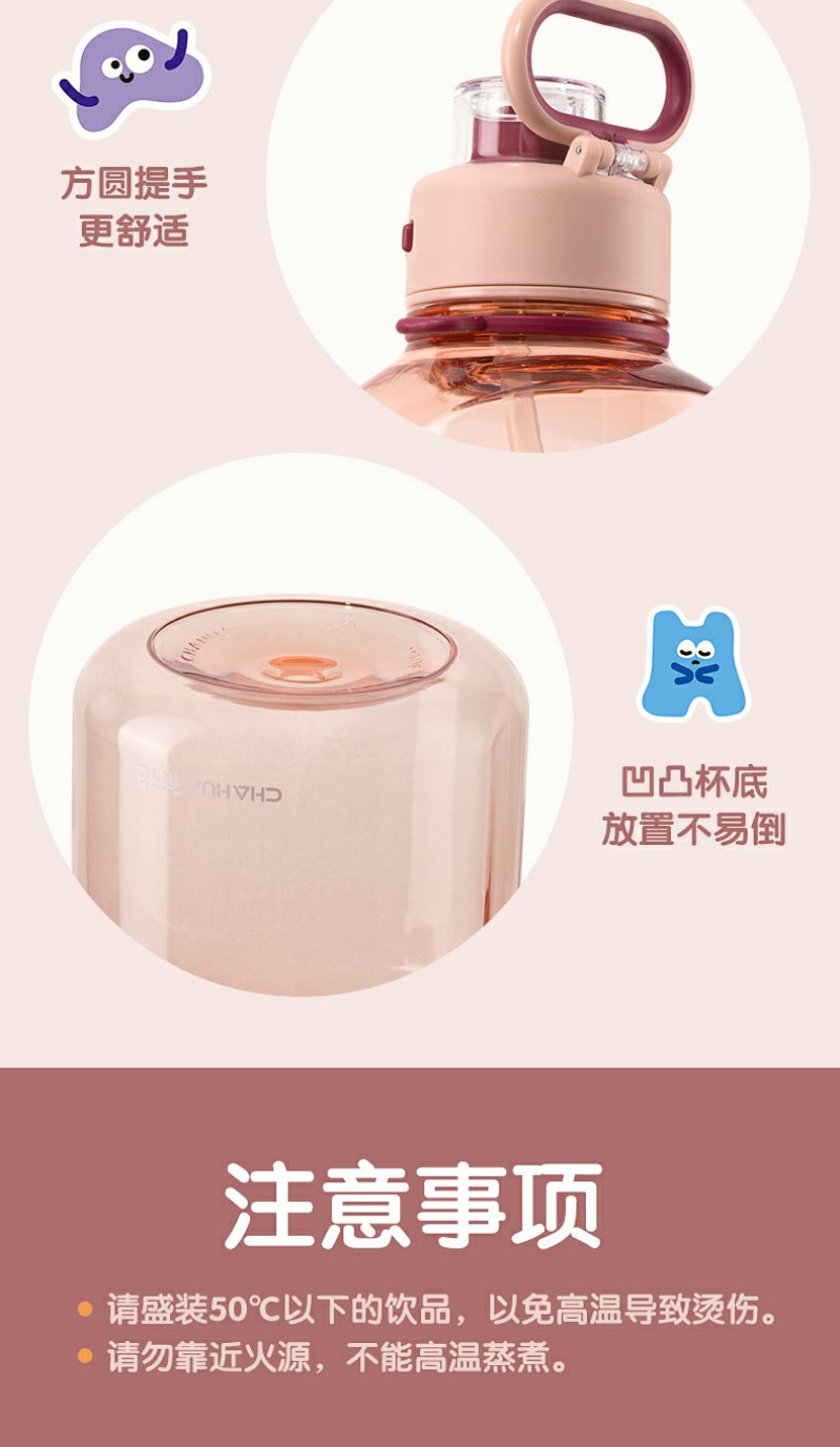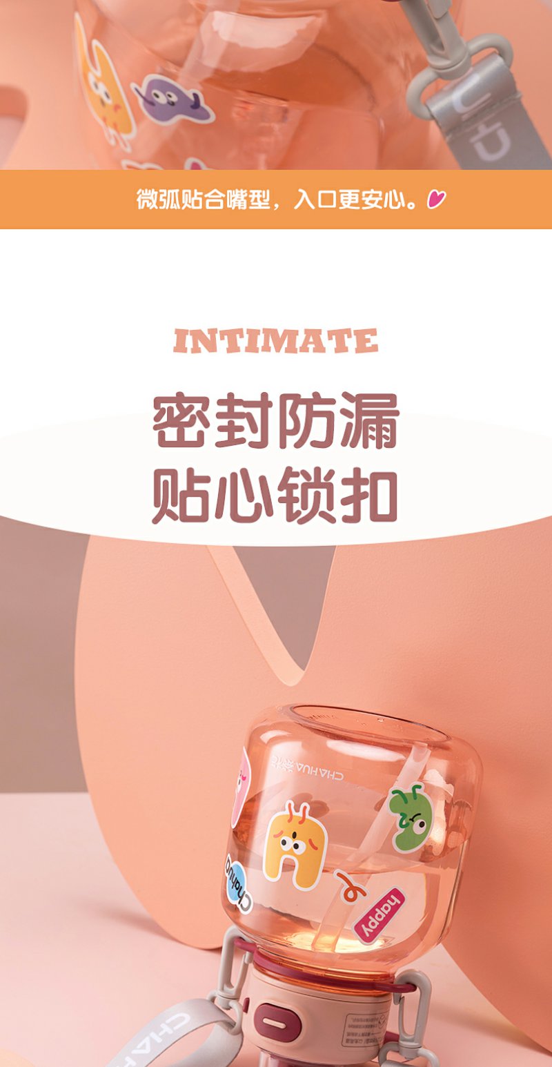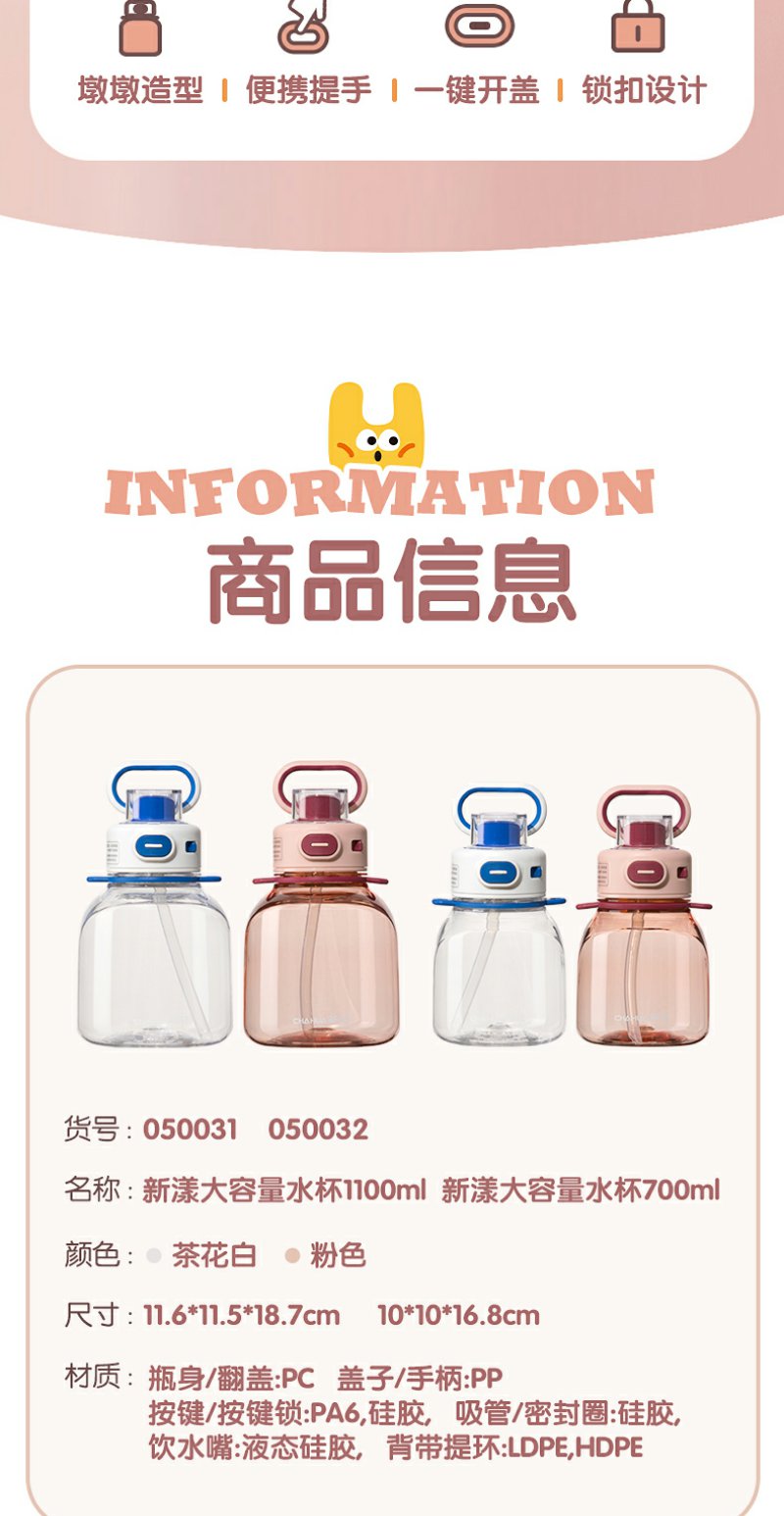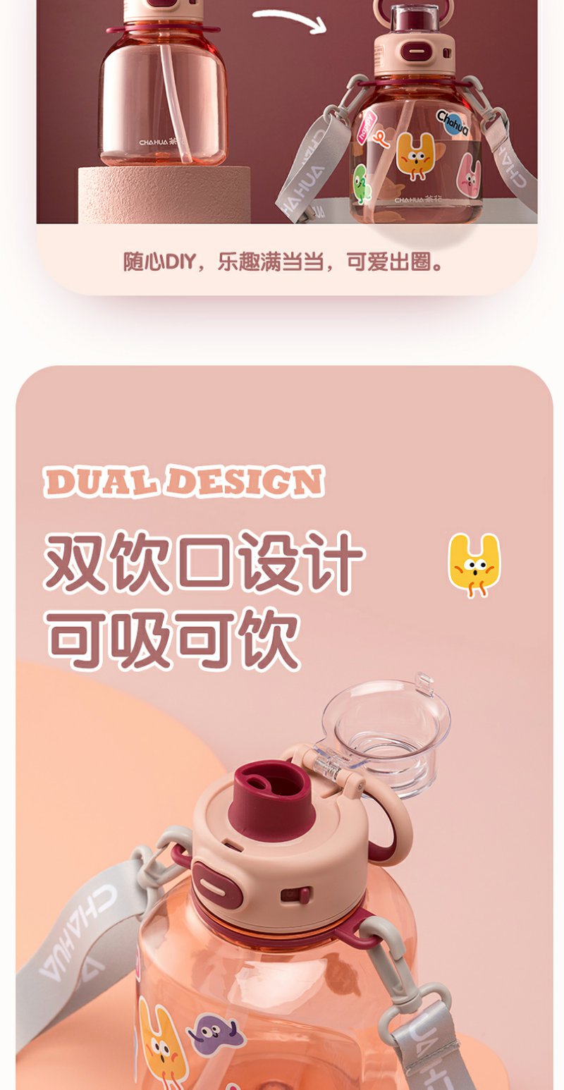 【茶花】大容量墩墩塑料水杯送贴纸送背带