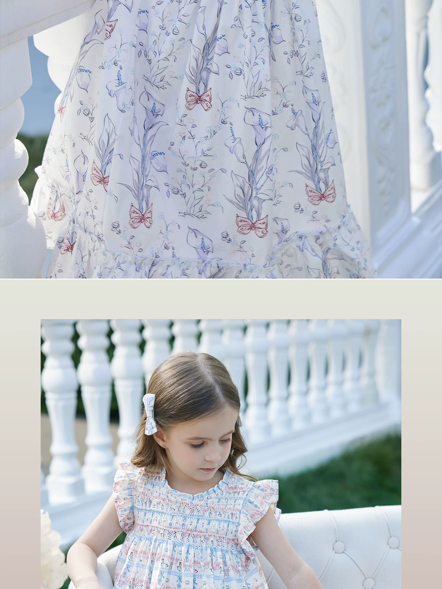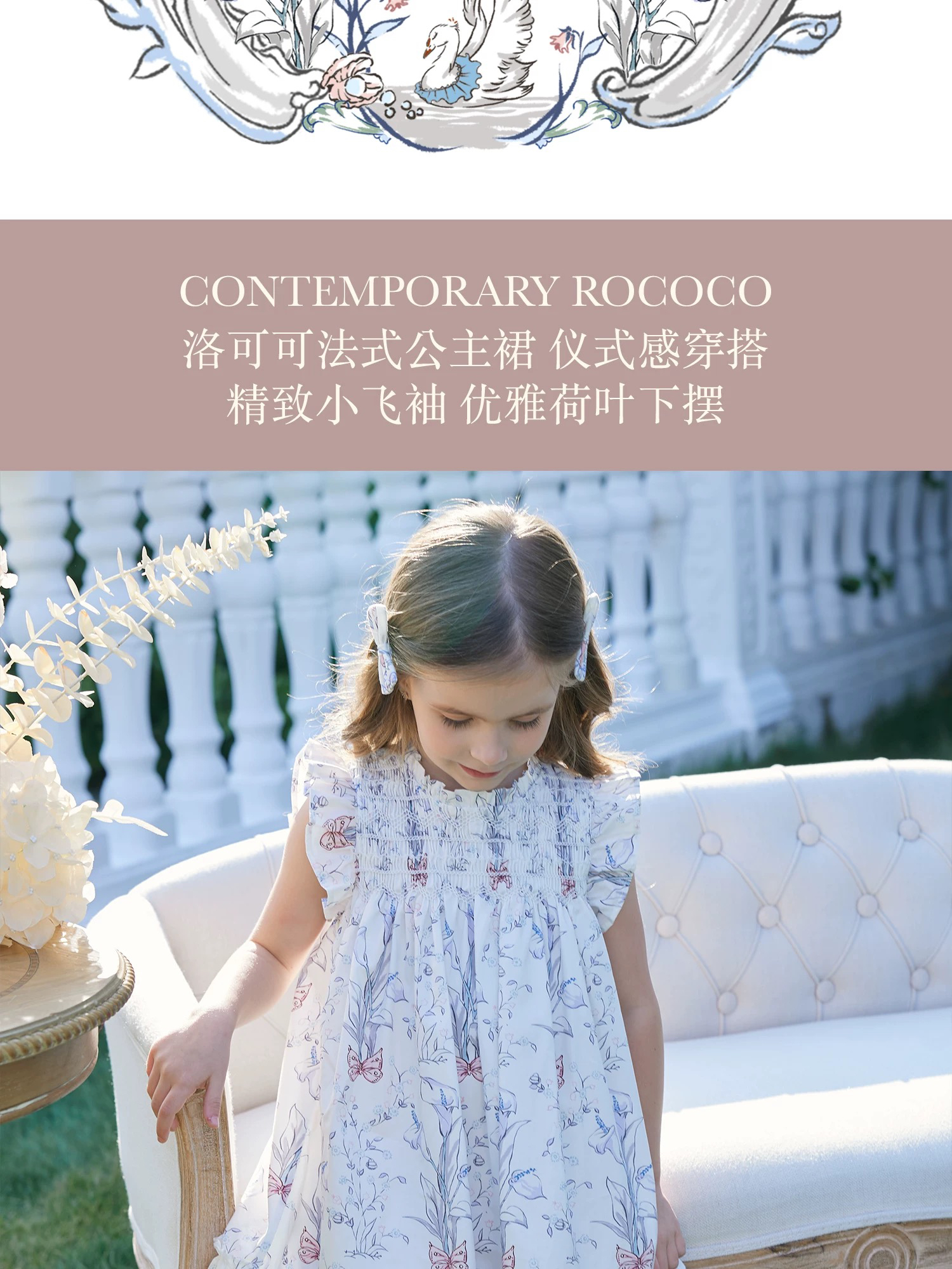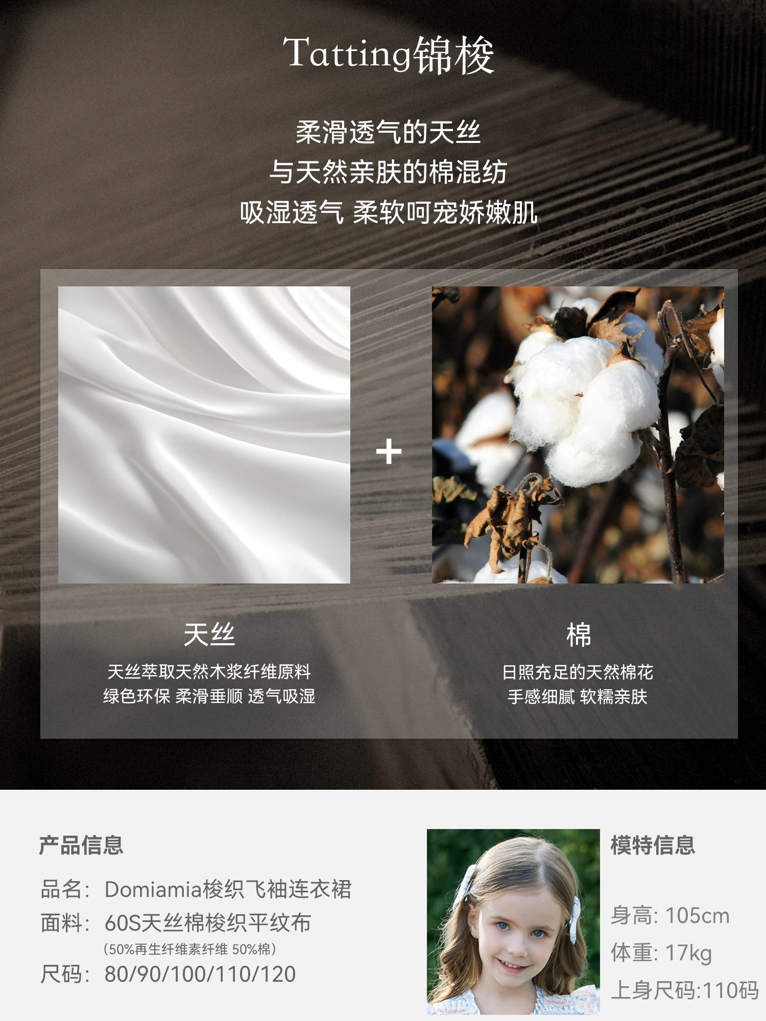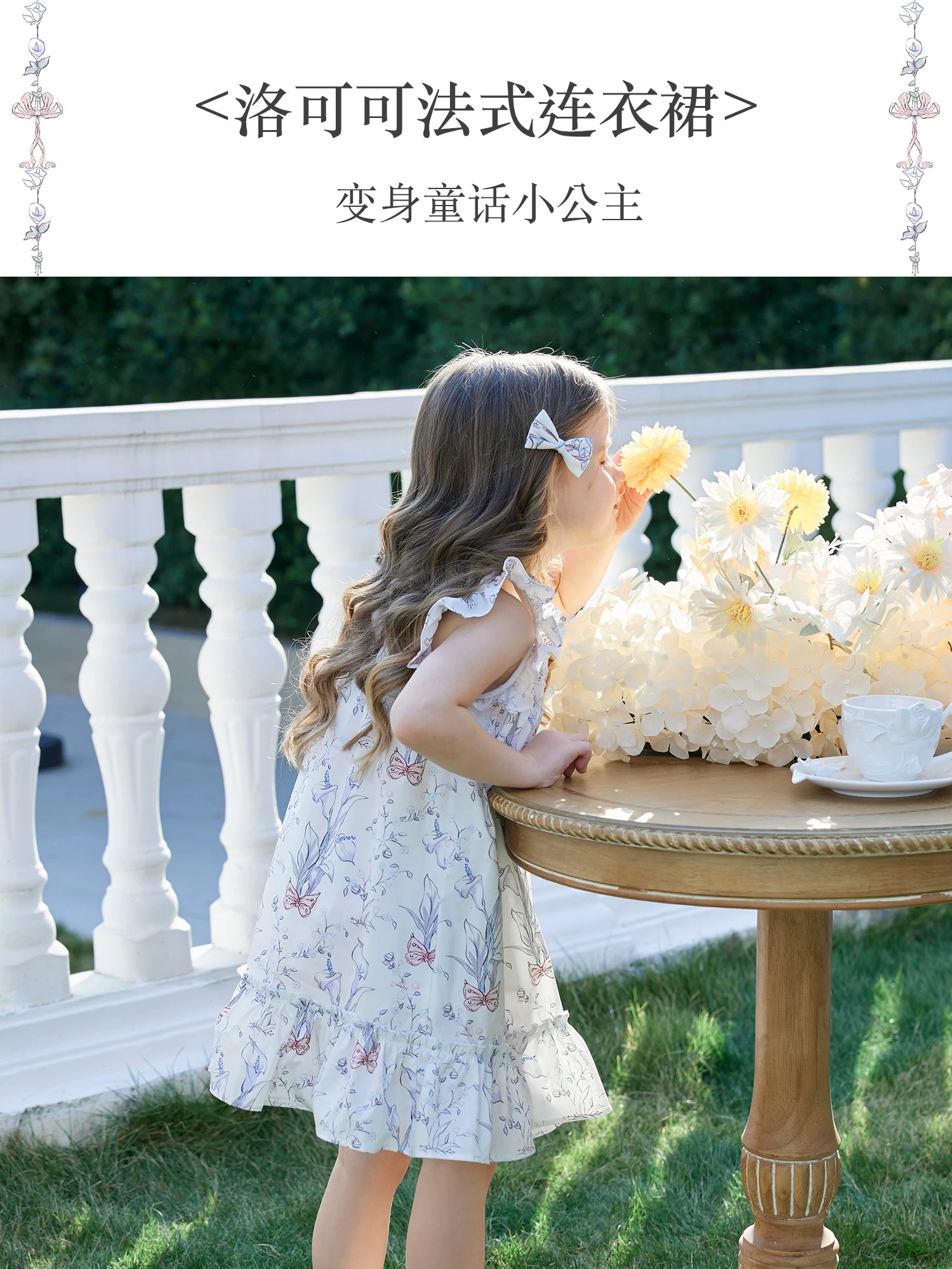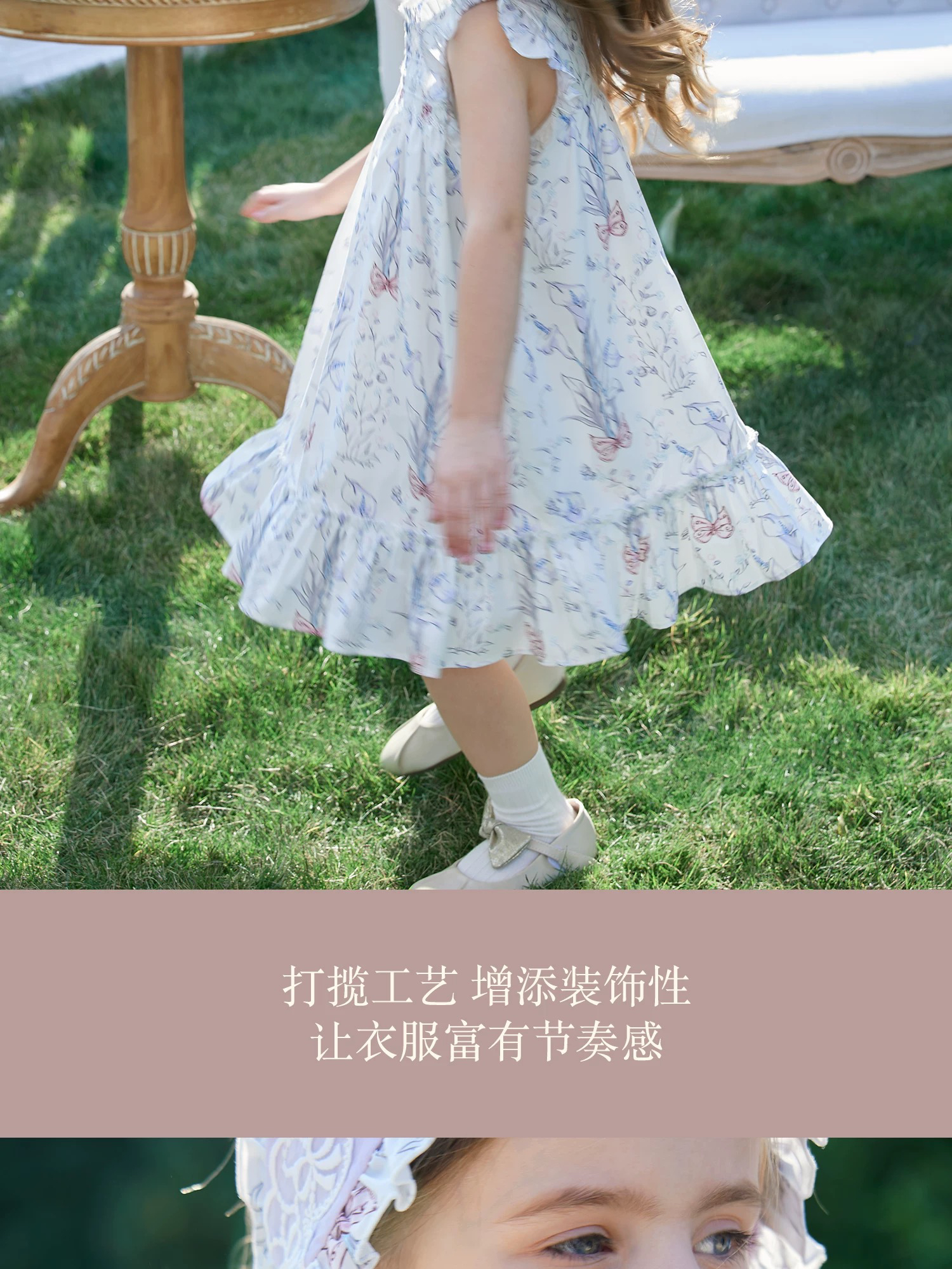 Domiamia 女童梭织飞袖花边连衣裙 夏季薄款公主裙
