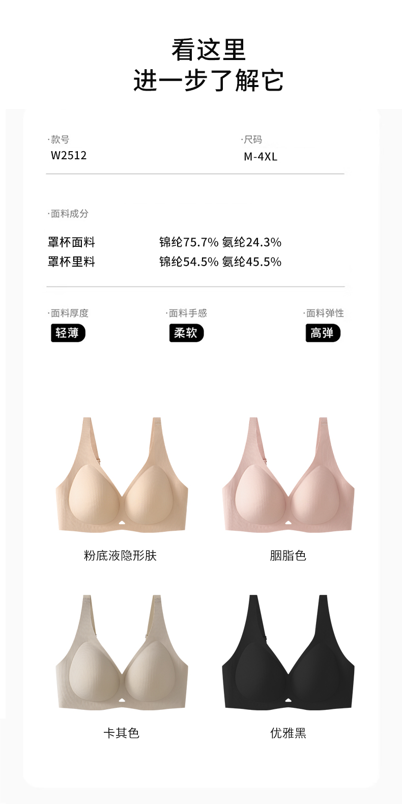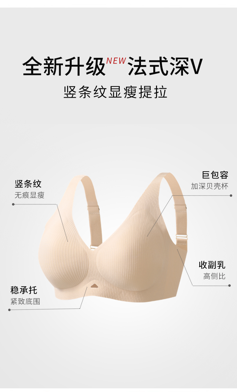 2026年新款竖条纹显瘦法式深V性感大码内衣-W2512【组合颜色需要自行可联系客服备注】