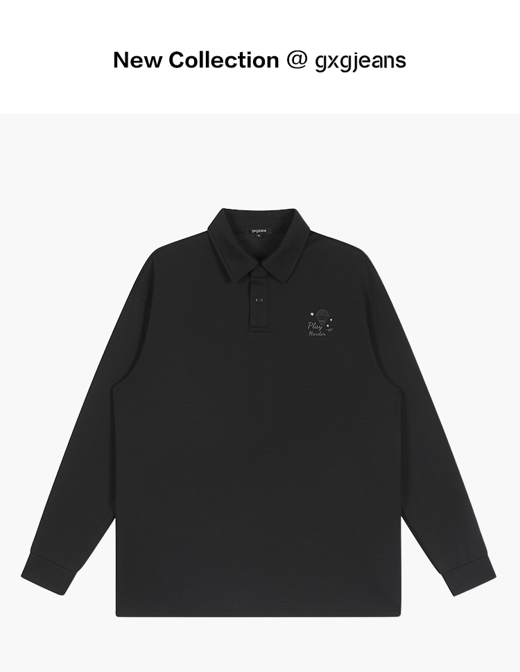 gxgjeans男装26春款翻领长袖POLO衫新潮个性印花休闲百搭通勤户外上衣男K&C