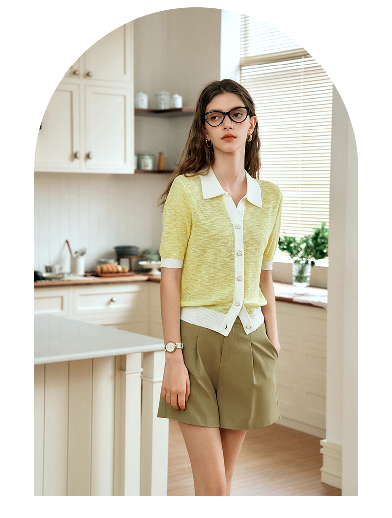 OLrain欧芮儿polo领针织衫女夏季2024年新款时尚简约设计感开衫