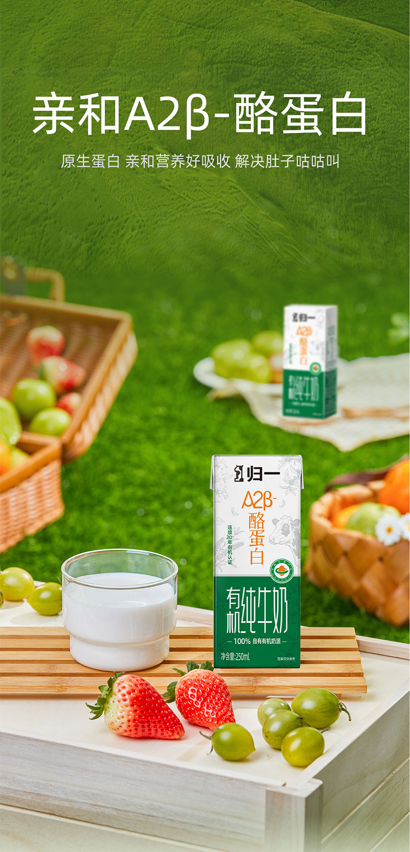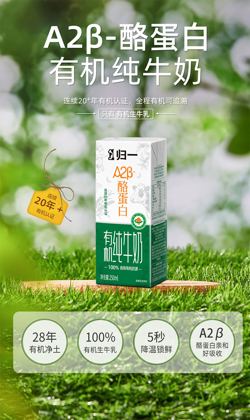 归一A2酪蛋白有机纯牛奶250ml*10瓶*2箱