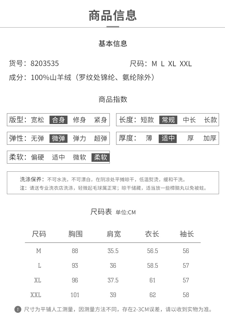 | 成分含量: 95%以上 | 上市年份/季节: 2020年秋季 |