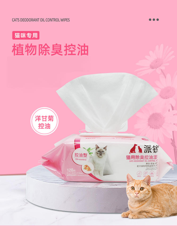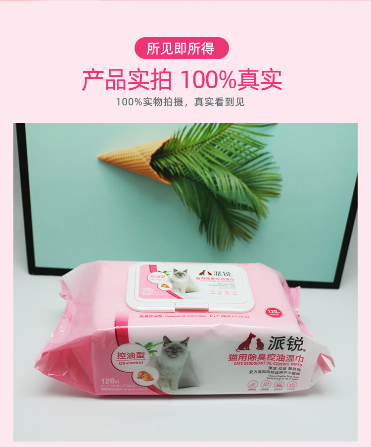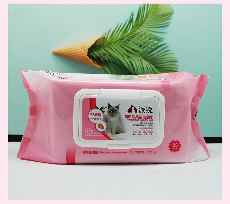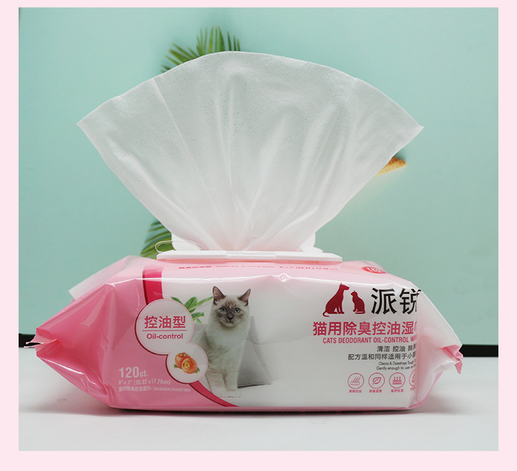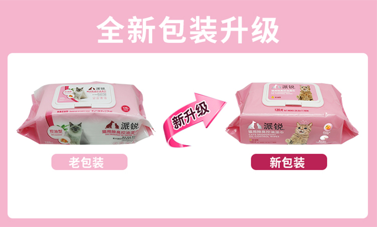 派锐猫用除臭控油湿巾猫专用湿巾无酒精去污宠物湿纸巾加厚120片