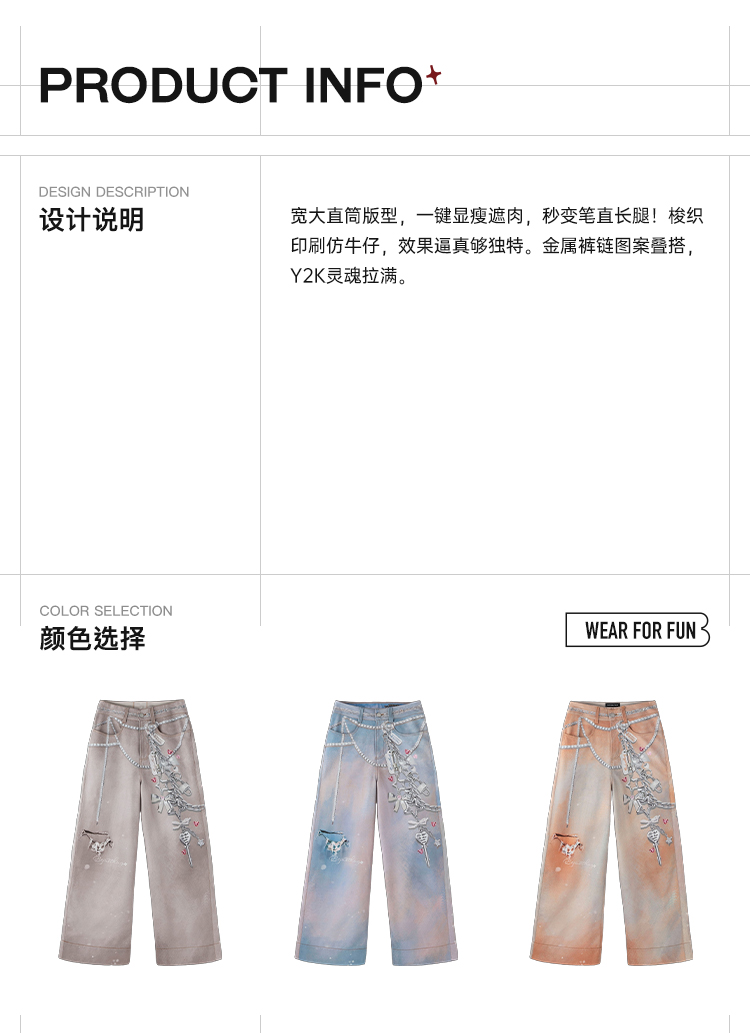 【门店限定款】不计后果 梭织印花直筒裤