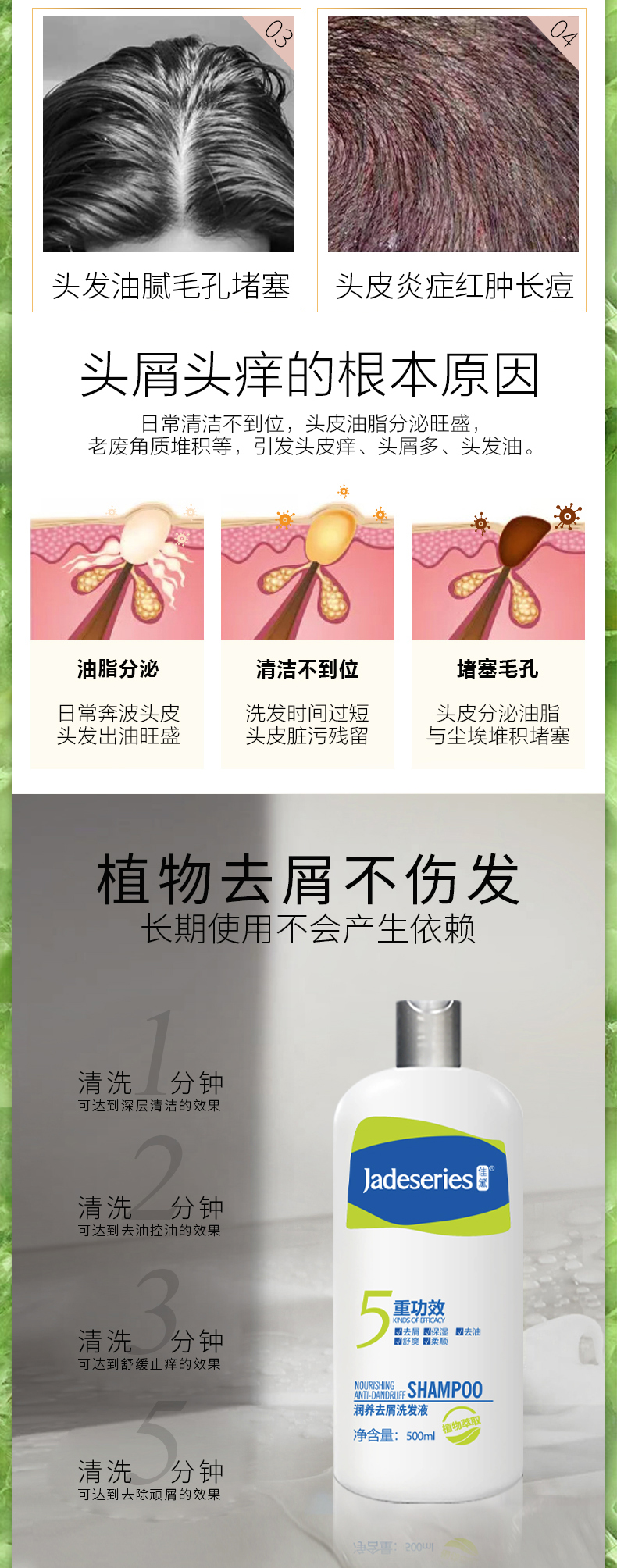 【团队研发 去屑不伤发】佳黛润养去屑洗发液 500ml 止痒去油洗发水