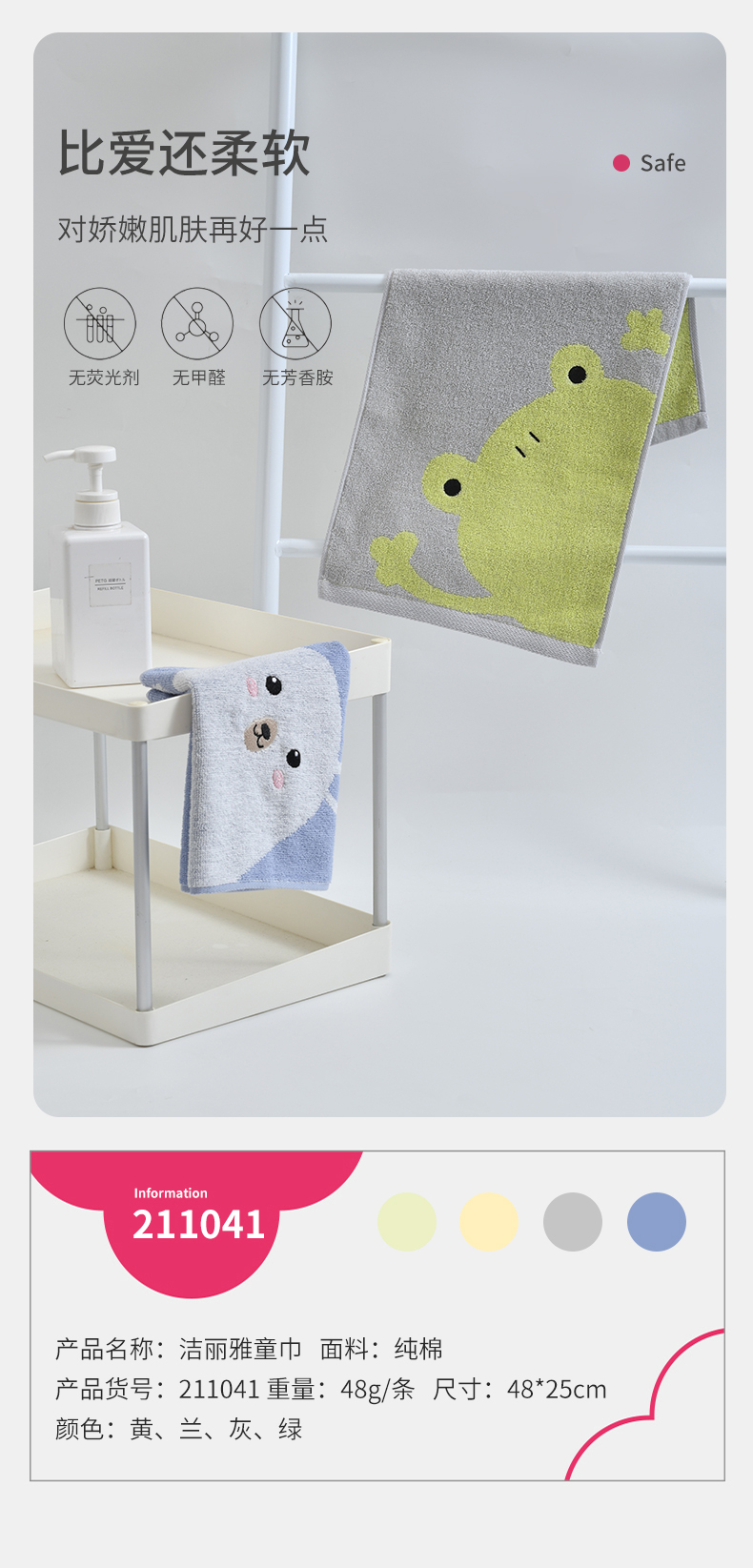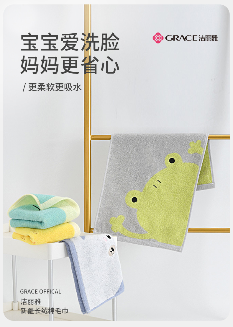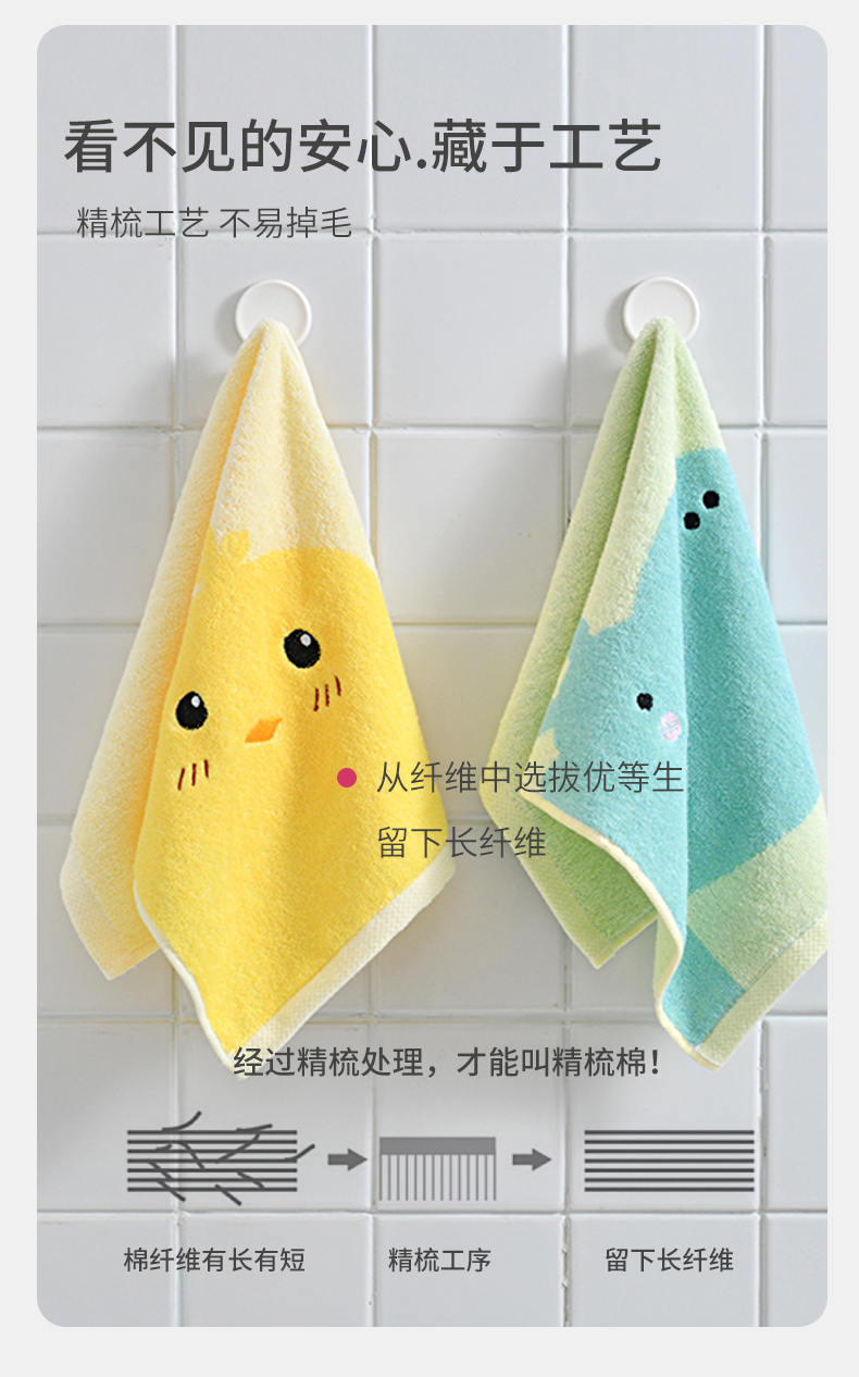 【纯棉儿童毛巾】家用全棉吸水卡通擦脸不掉毛