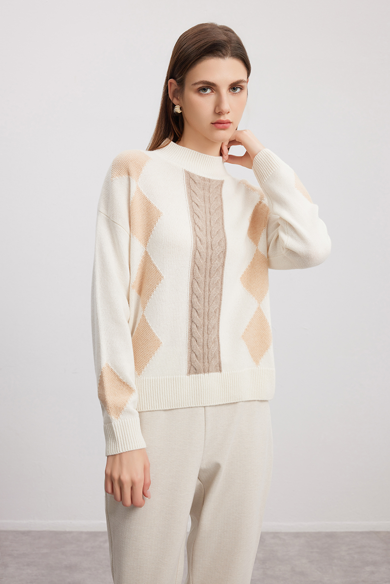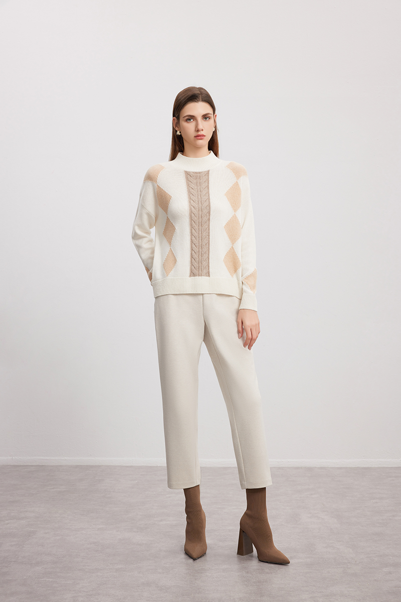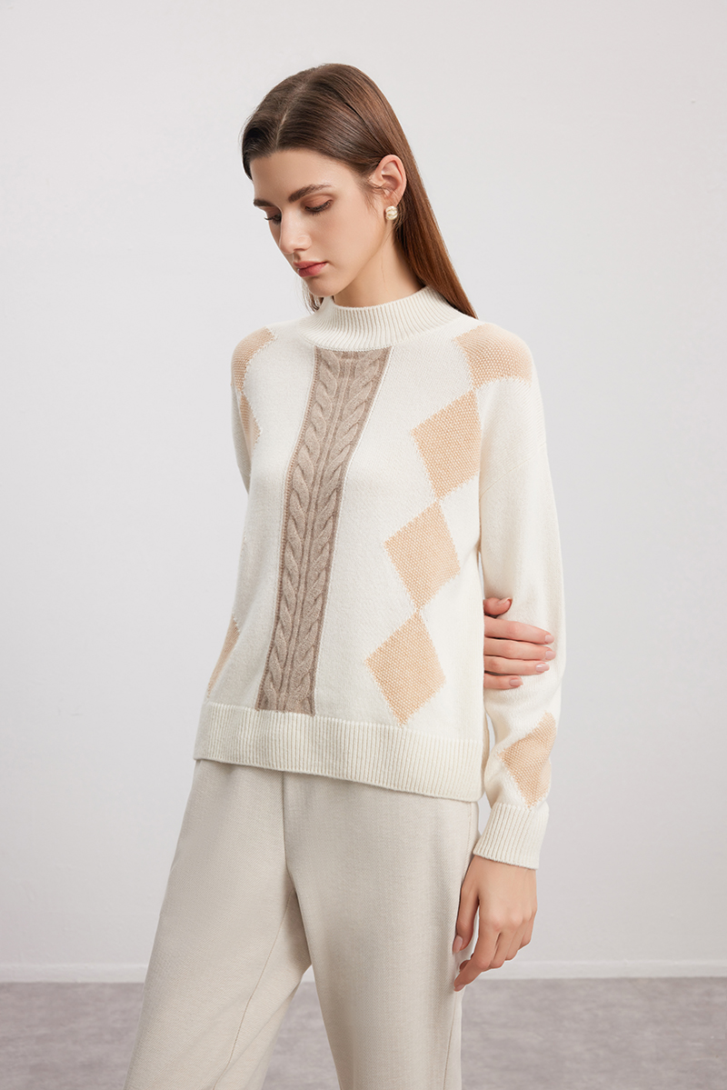 【半高领菱形绞花毛衣】羊绒世家秋冬新品女士100%山羊绒内搭保暖毛衣
