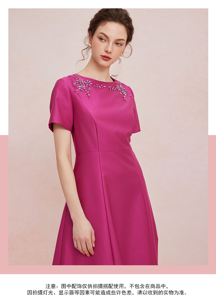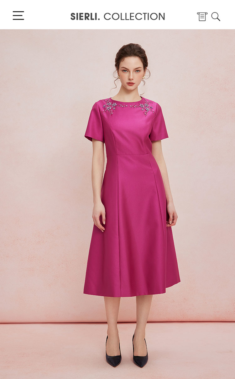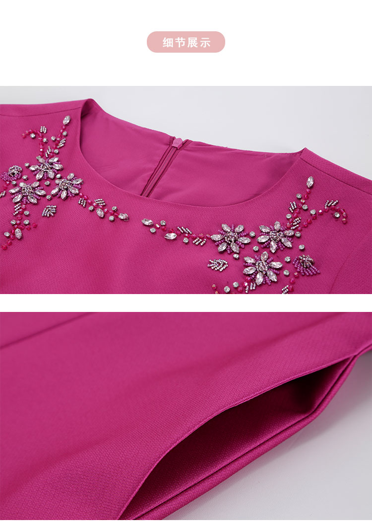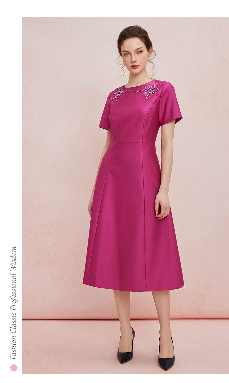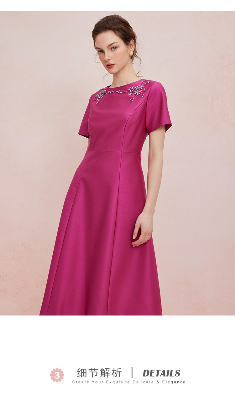 QF840斯尔丽2025新款气质轻奢法式钉珠修身放摆宴会礼服显瘦显高连衣裙