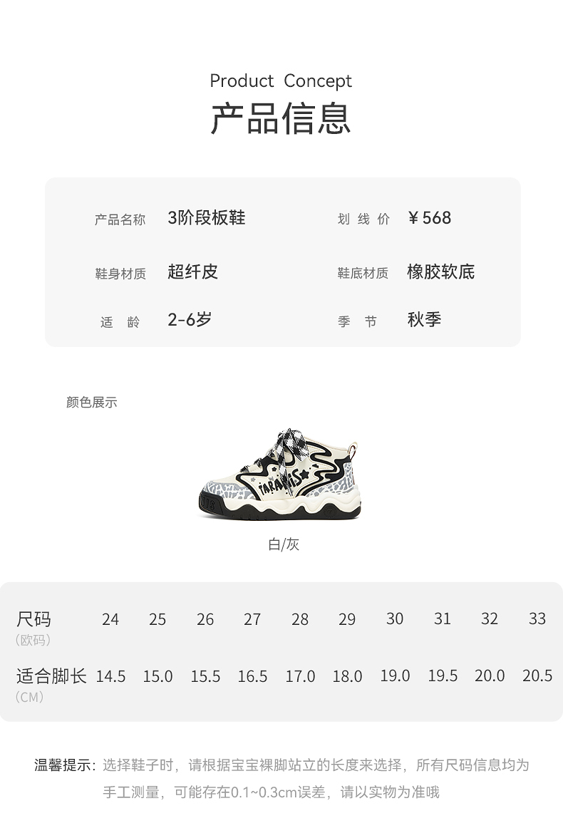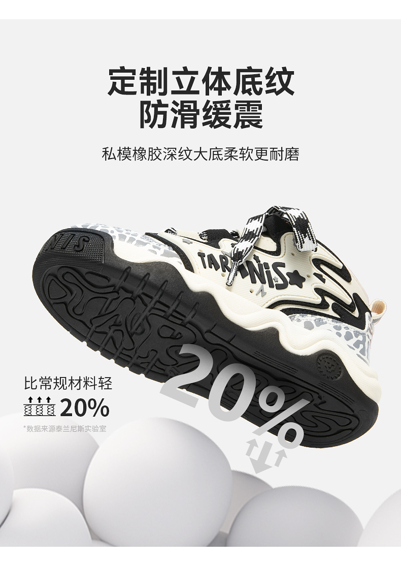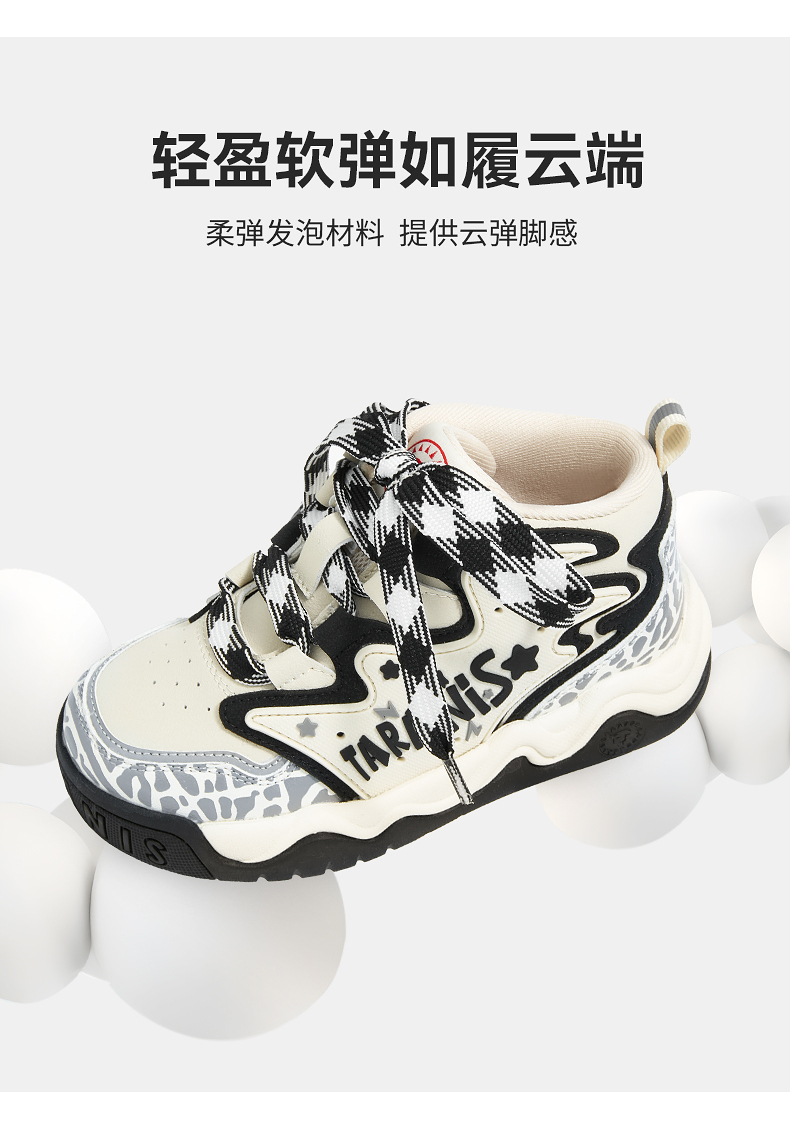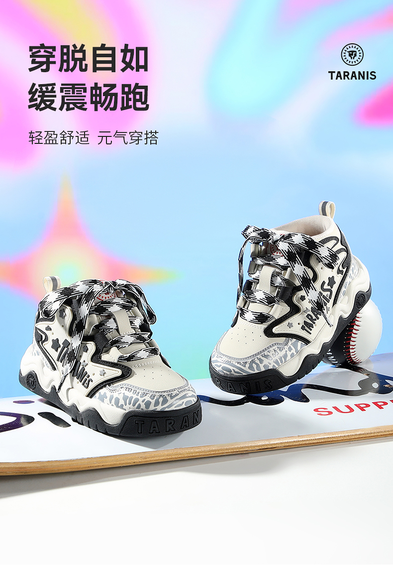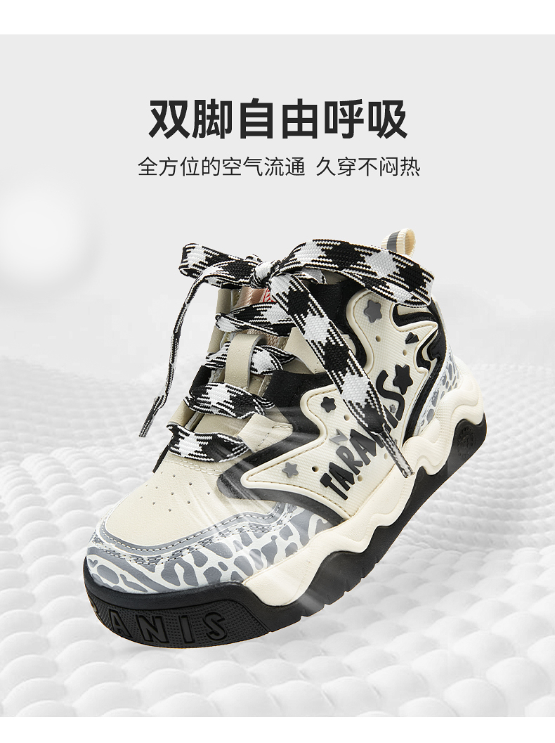 泰兰尼斯2025新款童鞋儿童板鞋高帮秋季男女童软底缓震运动休闲鞋 T02X5C7424