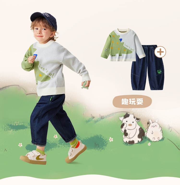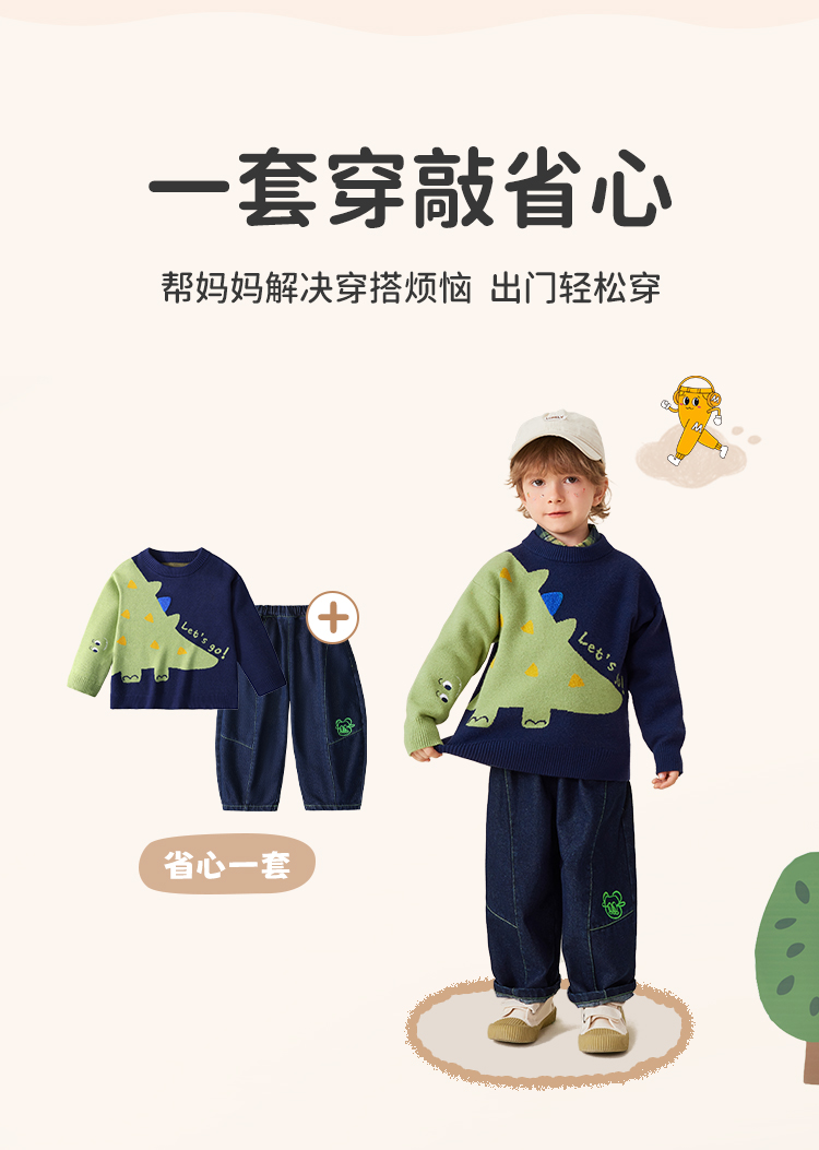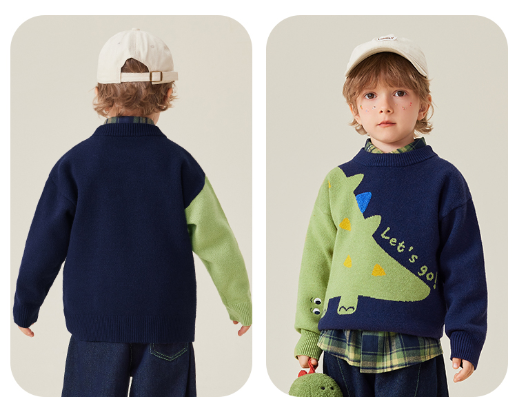 【90-120】【MQDmini】男童针织毛衫卡通撞色毛衣