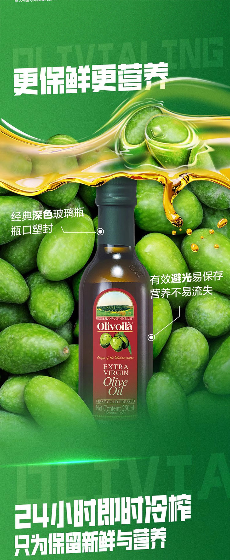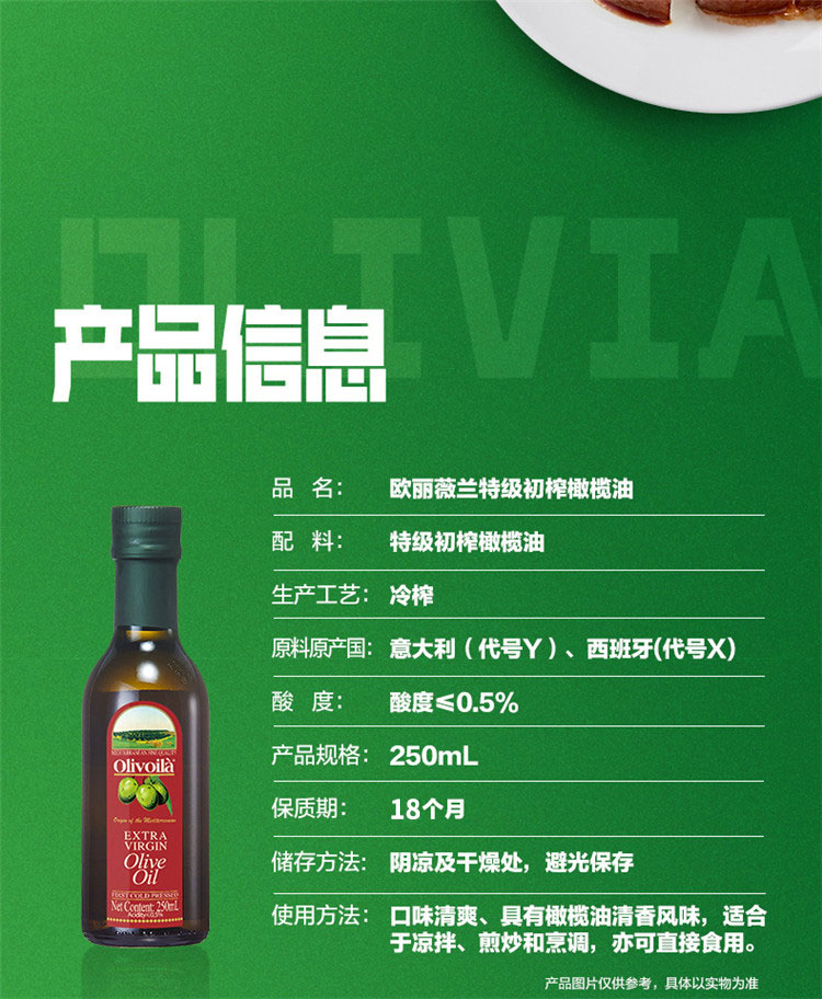 欧丽薇兰特级初榨冷榨橄榄油250mL红标-YS