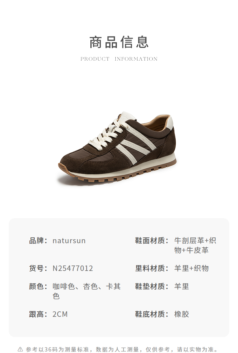 natursun复古德训鞋女时尚百搭阿甘鞋运动舒适休闲鞋NN25477012