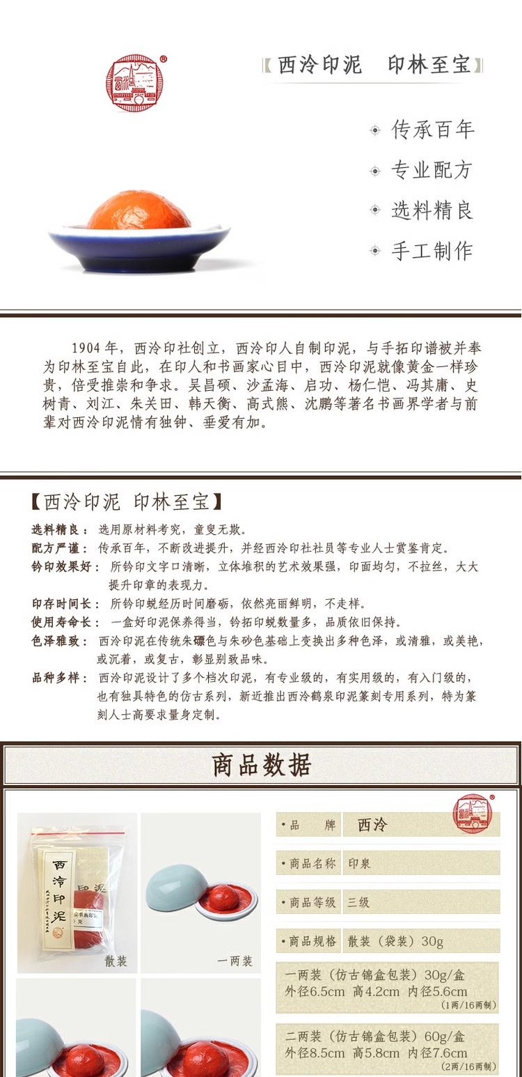 西泠印社印泉印泥篆刻印章书画书法西冷印泉朱砂色印泥30g60g150g包邮盒装书法印泥印章彩色红色印泥手工制作