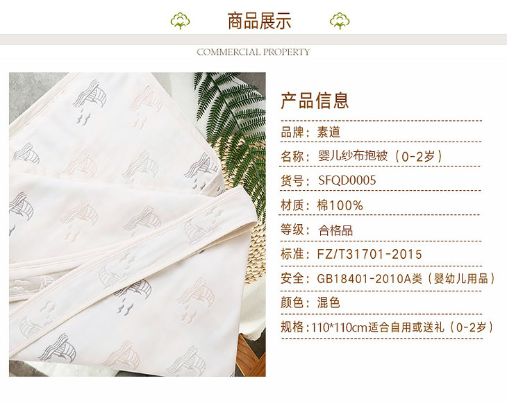 有机棉 纱布抱被110*110cm【0-2岁婴幼儿强烈推荐】 包邮