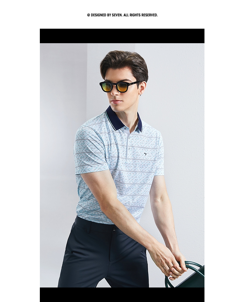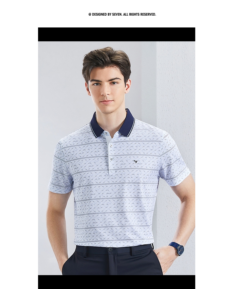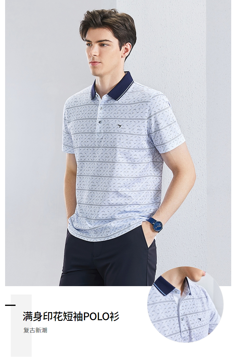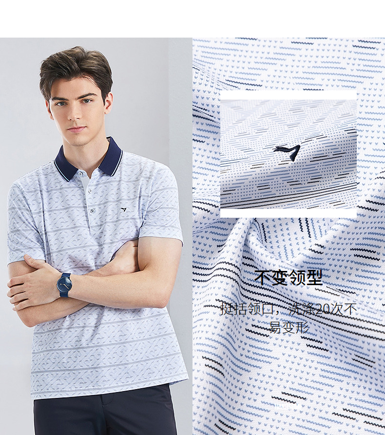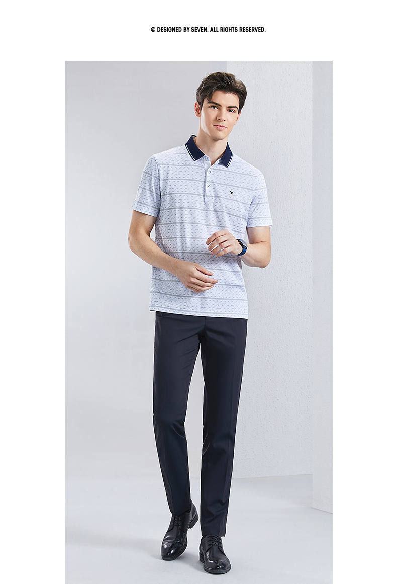 【不变形领】【5A抗菌2A防螨】柒牌男士polo衫短袖夏季新款中老年满印翻领上衣 126T73400