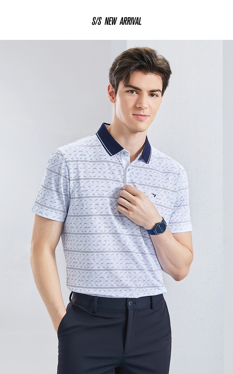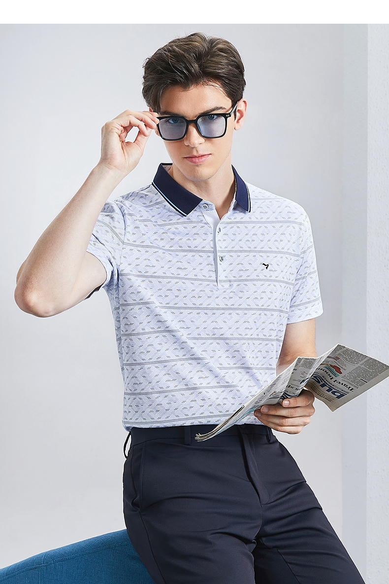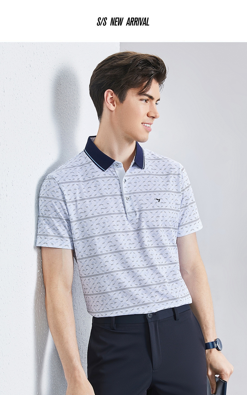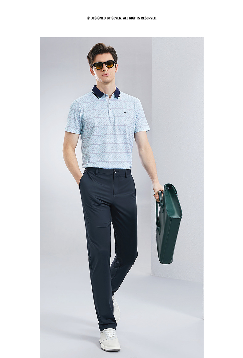 【不变形领】【5A抗菌2A防螨】柒牌男士polo衫短袖夏季新款中老年满印翻领上衣 126T73400