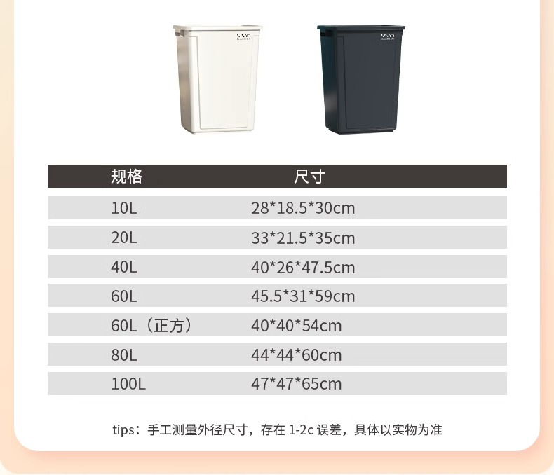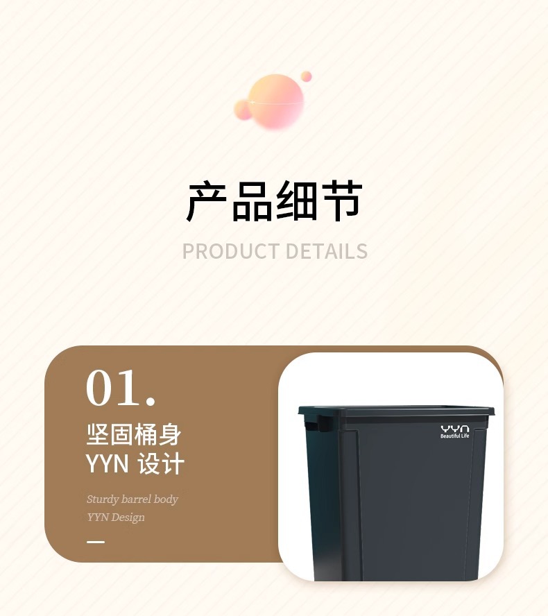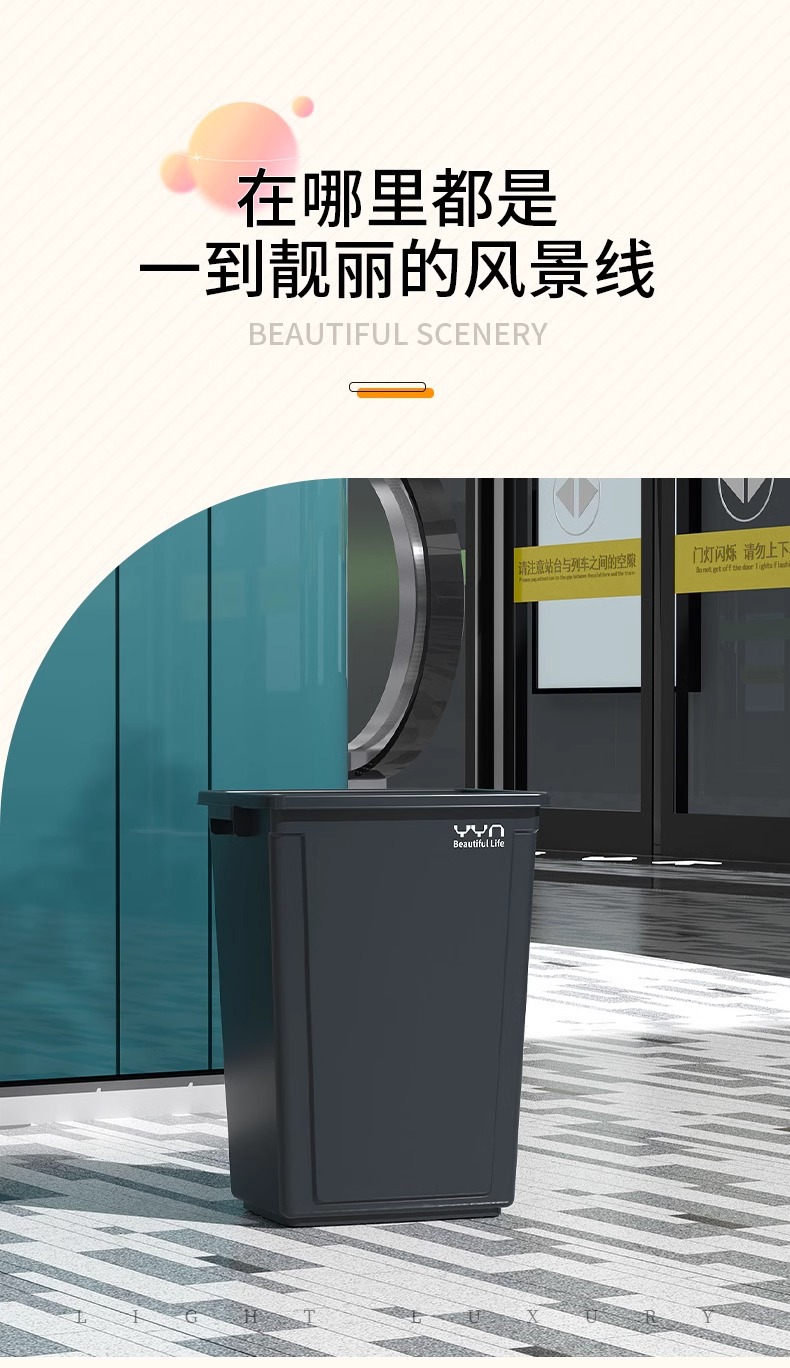 【家用大号垃圾桶】大容量商用无盖 户外塑料40L高颜值卫生间长方形60L