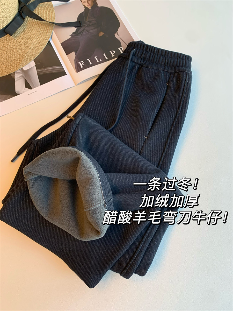 💰89 加绒加厚醋酸羊毛弯刀牛仔裤&阔腿裤,一条过冬!仿牛仔黑科技,1:1复刻牛仔纹理,重磅高克重,硬挺有型