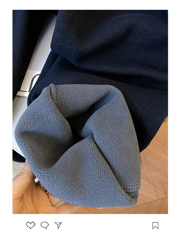 选用了今年爆款免水洗牛仔面料,同时面料中加入了绵羊毛和醋酸纤维。