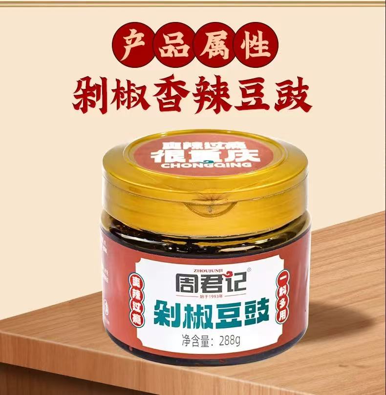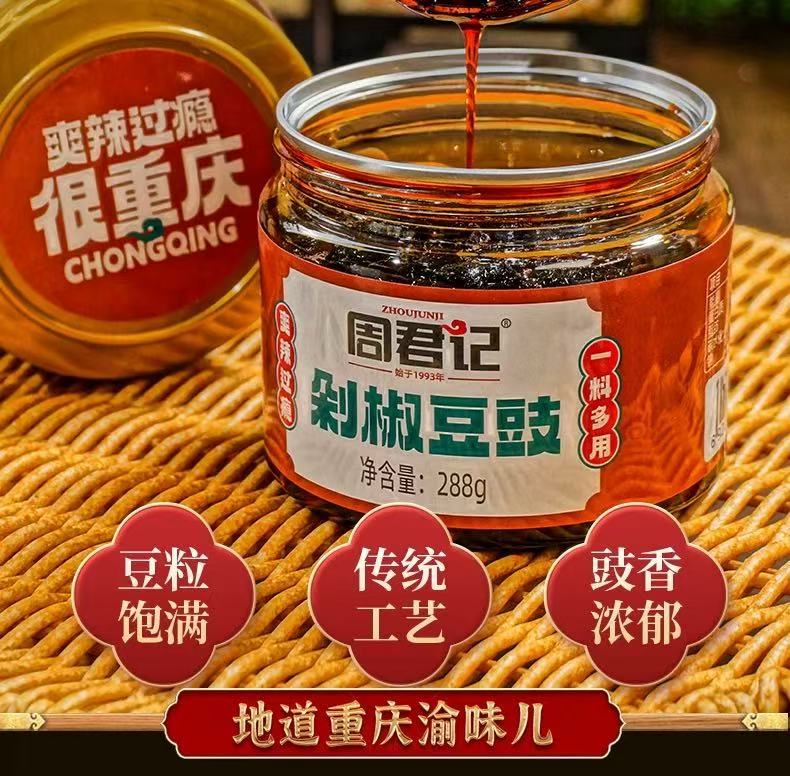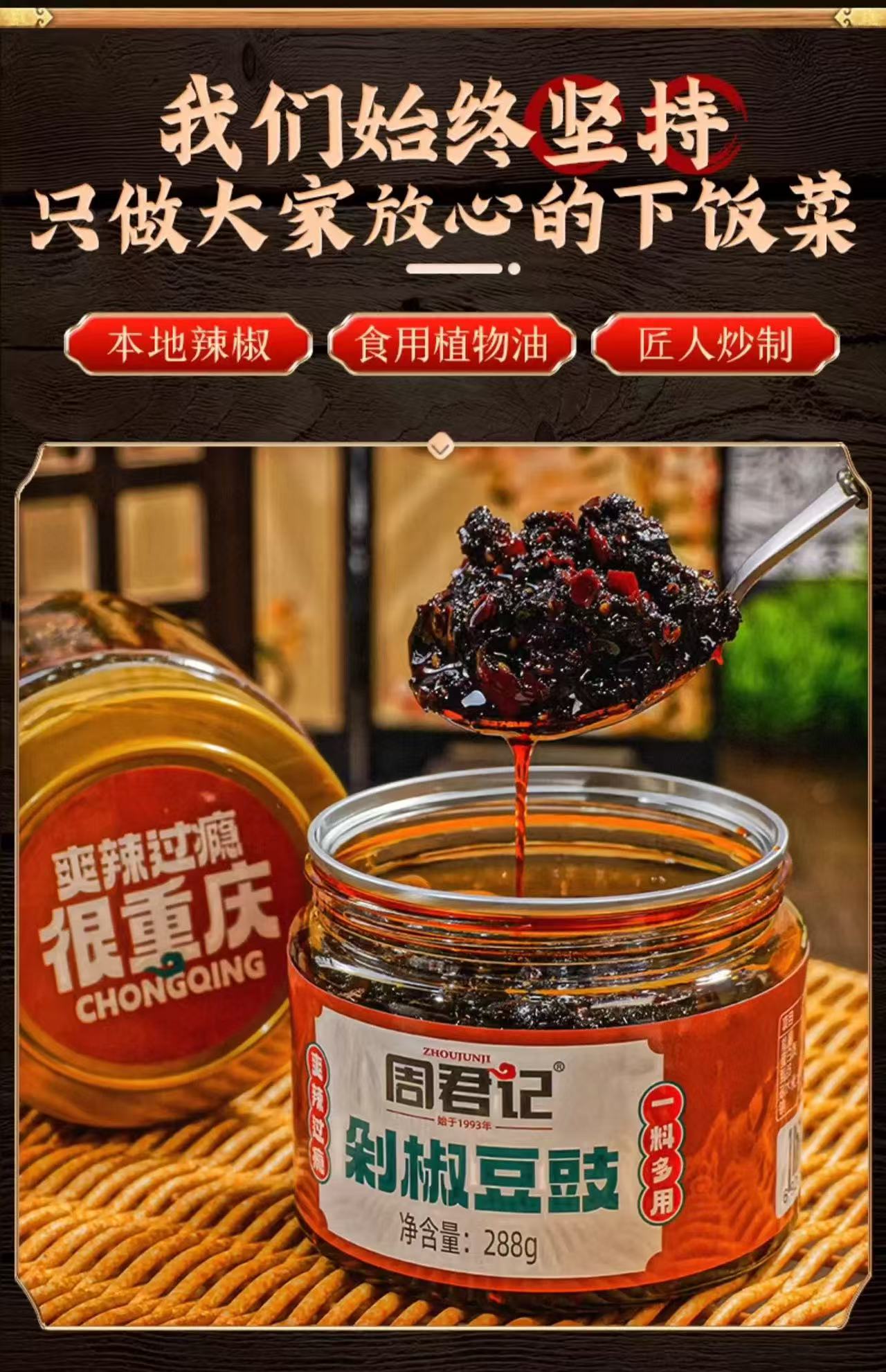 【周君记】香辣剁椒豆豉288g下饭菜瓶装辣椒拌饭拌面酱