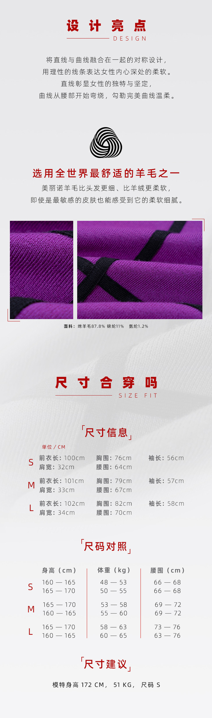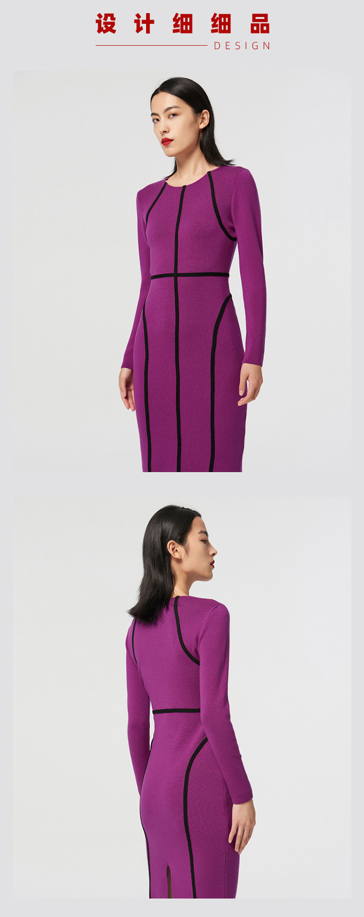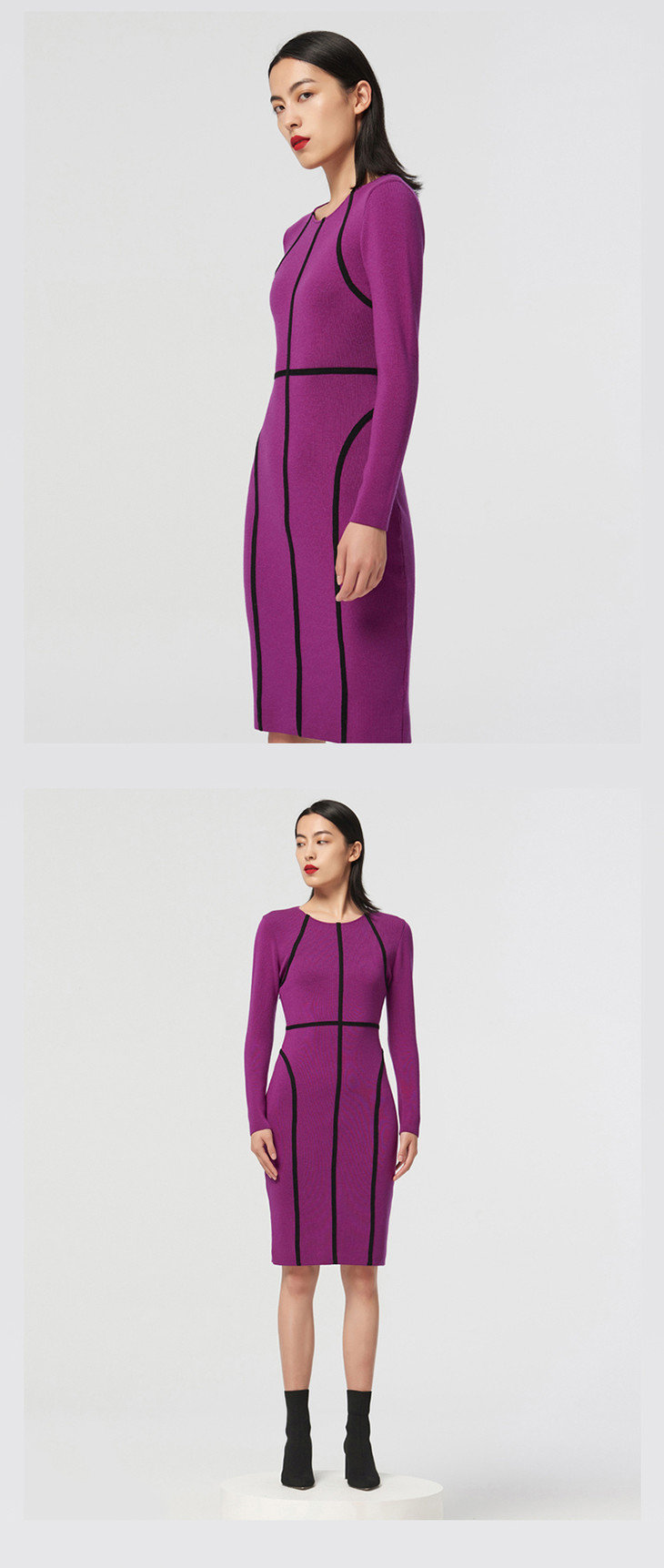 [提线玩偶]AtelierMissLu心机线条芍药紫撞色羊毛修身高弹连衣裙