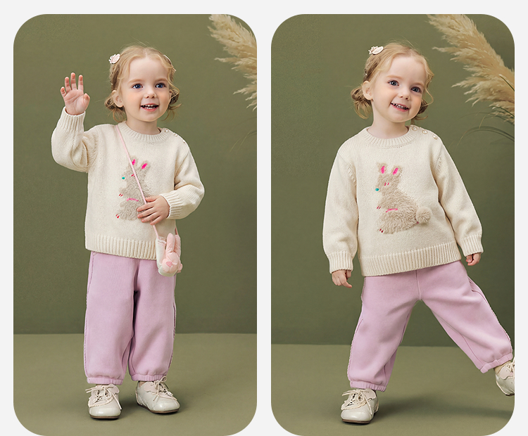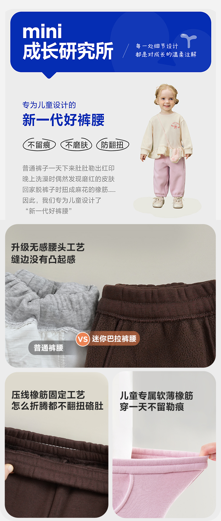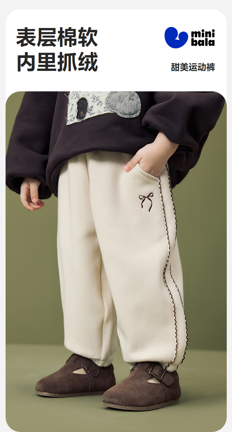 迷你巴拉女童宝宝甜美长裤2025冬季新品内里加绒亲肤保暖裤子