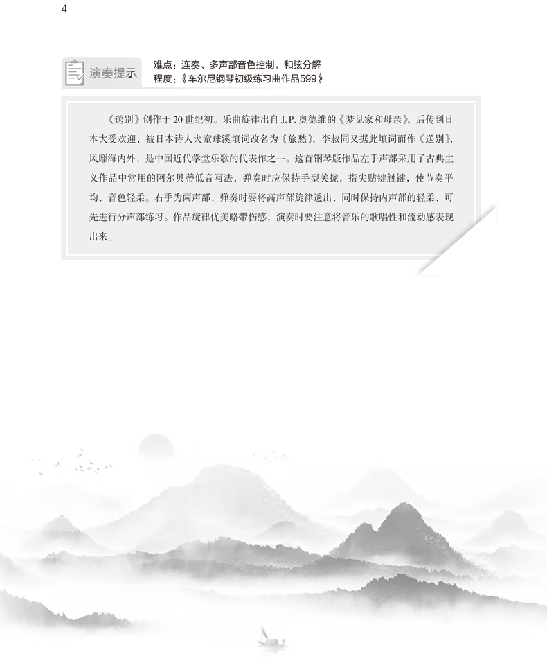 本书精选多首以红色题材为主的中国经典歌曲改编为钢琴作品,献礼中国共产党成立100周年。全书按四个时期划分板块,每个板块收集了该时期被广为传唱、艺术性强的爱国主义歌曲,以演奏难度和技巧排序归类,适用于初、中级水平的钢琴演奏与教学。全书同时还附以作品人文历史矩阵图;每个板块包含曲目人文解注和教学指导,并配以插图,使学生得到音乐、人文、美术等全面艺术教育和爱国主义熏陶。本书的出版将为学校、少年宫、社会钢琴教学在爱国主义美育题材方面提供丰富资料。