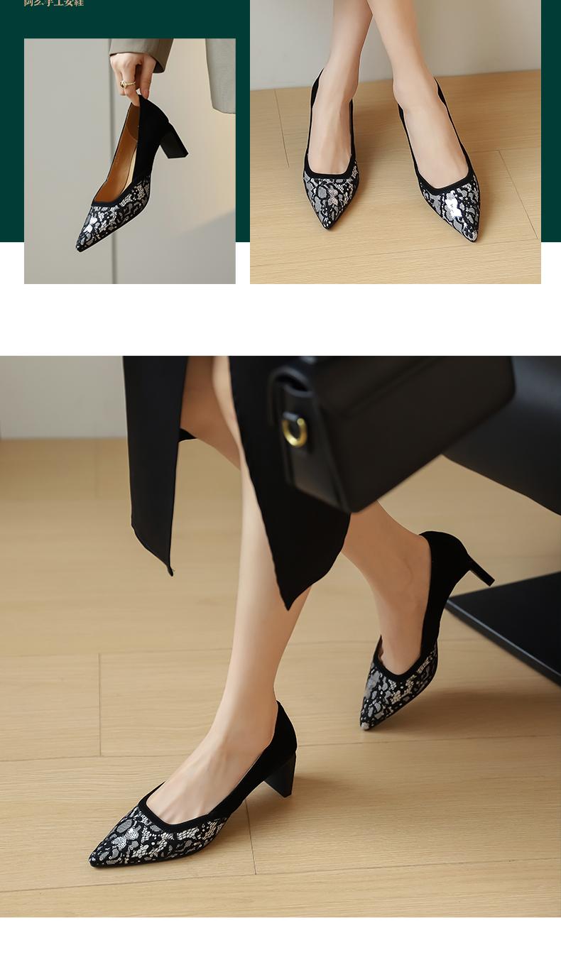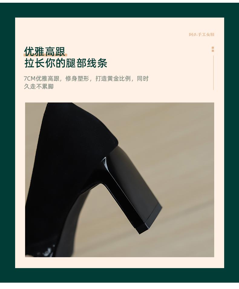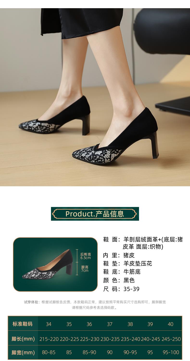 阿么手工女鞋2025新款蕾丝方跟高跟鞋气质新中式百搭尖头单鞋7CM