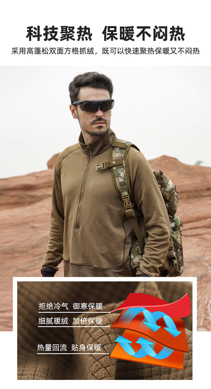第六代鹰爪穿梭者立体方格轻量半拉链抓绒衣-新雪丽棉加强版