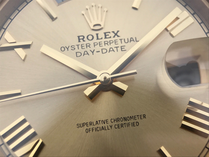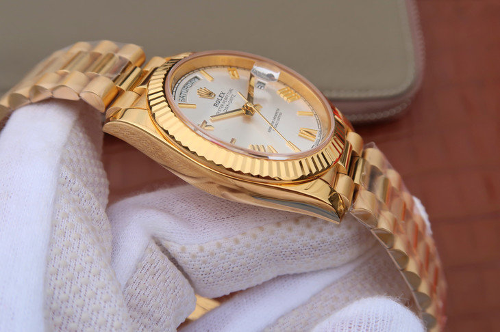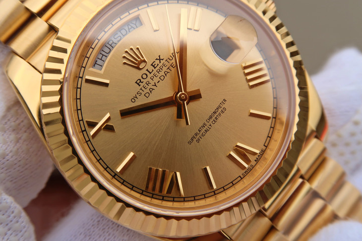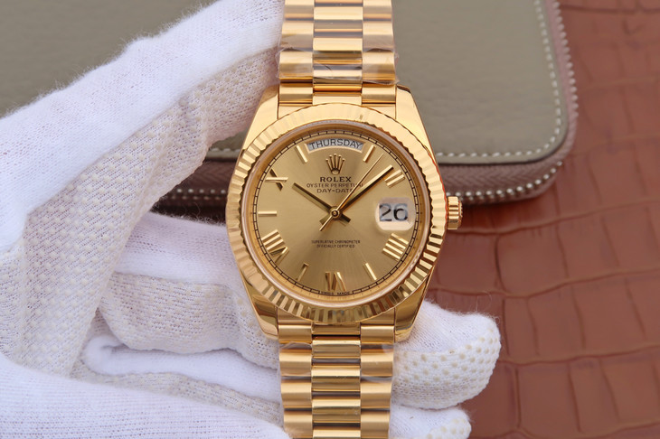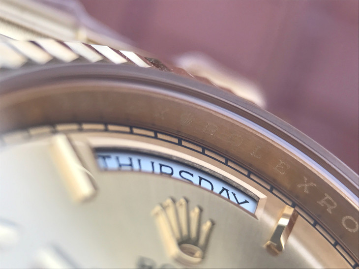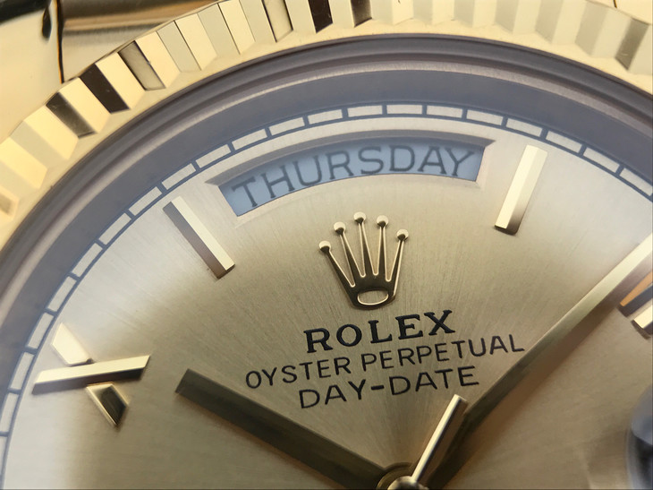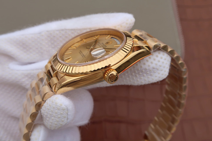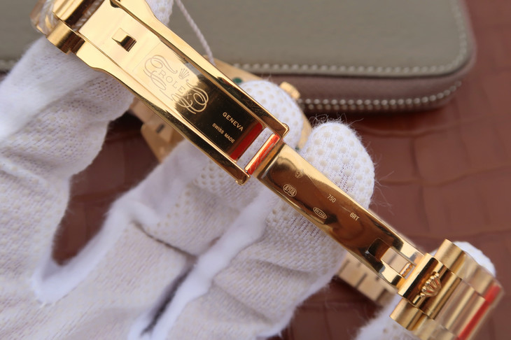 CR劳力士星期日历型40毫米日志,颠覆以往传统工艺!一:904L精钢。二:18厚金部分采用台湾 铸金技术,比市场一般的"包金"耐用三倍以上(铸金:一种使金层和精钢粘合度更加紧密的新技术,又叫电铸,市场不太懂的人叫镀K)。三:真夹板3255机芯(假夹板的隐患:假钻和假齿轮容易脱落,卡死,导致机芯偷停损坏)。机芯调时方向与正品一致,(市面上的仿机调时是大拇指往下拉,长荣星期日历型是大拇指往上推)。四:1表1号表壳内影与吊牌和保证卡号码全部一致。配长荣防伪和包装