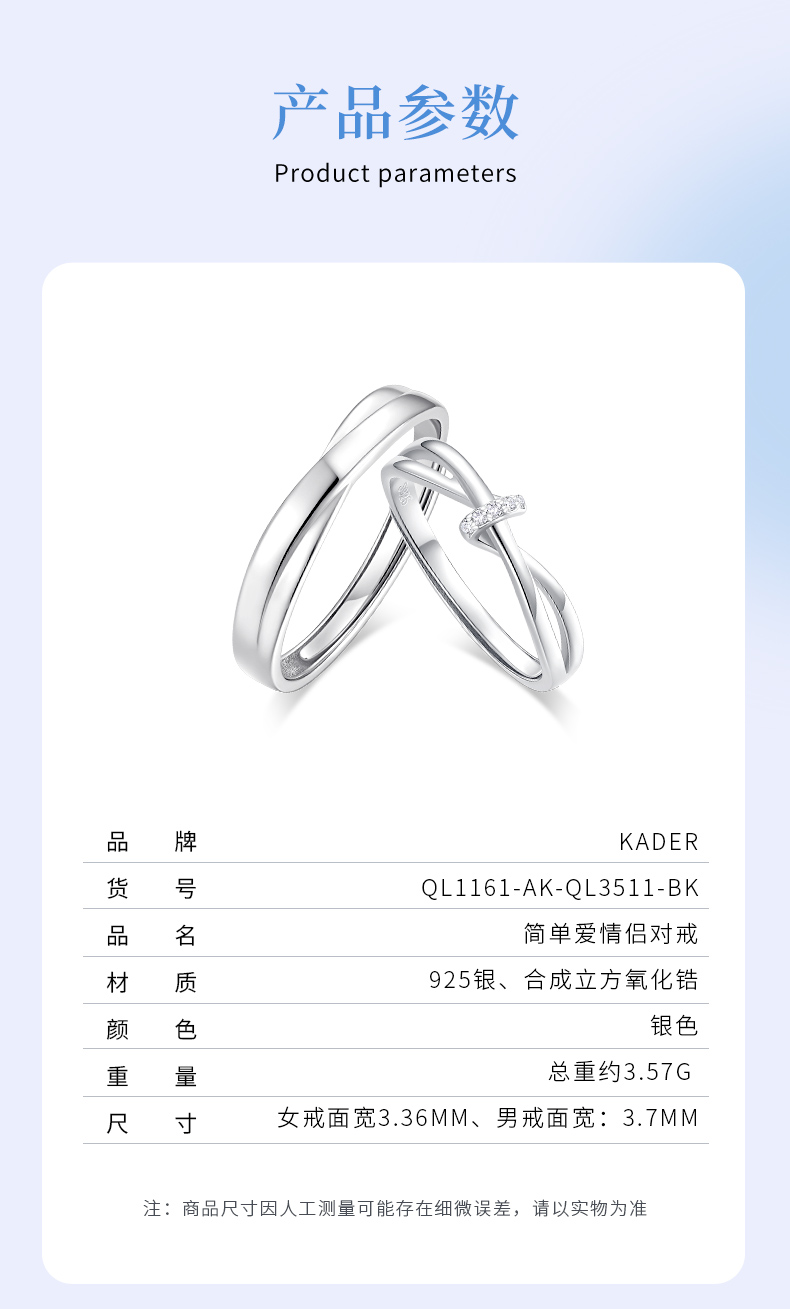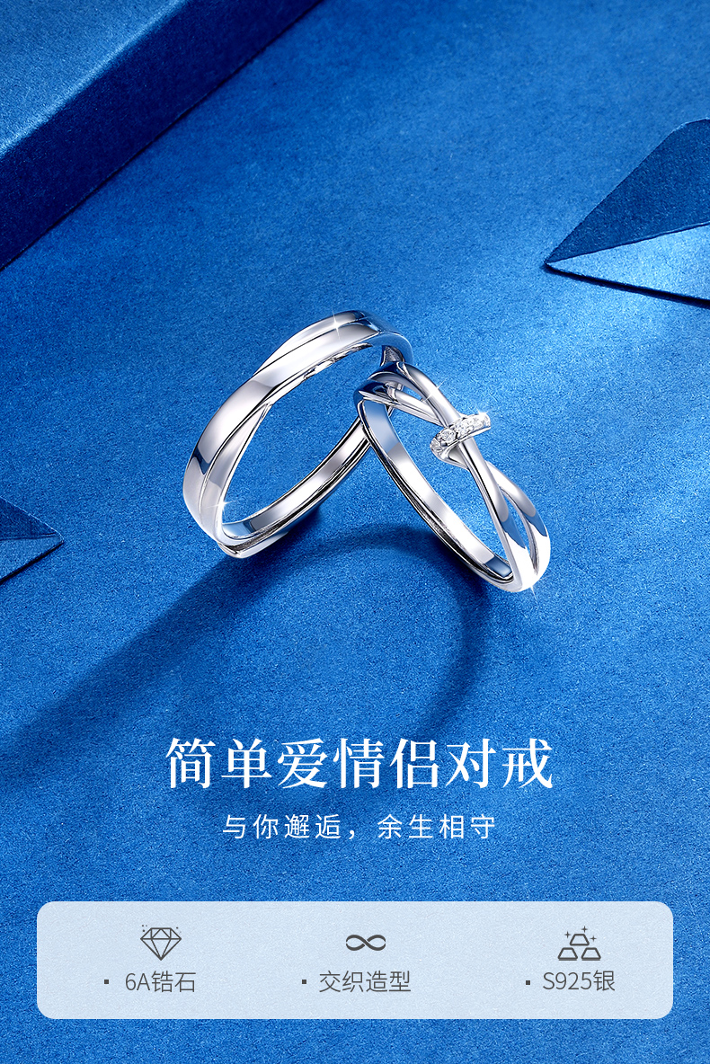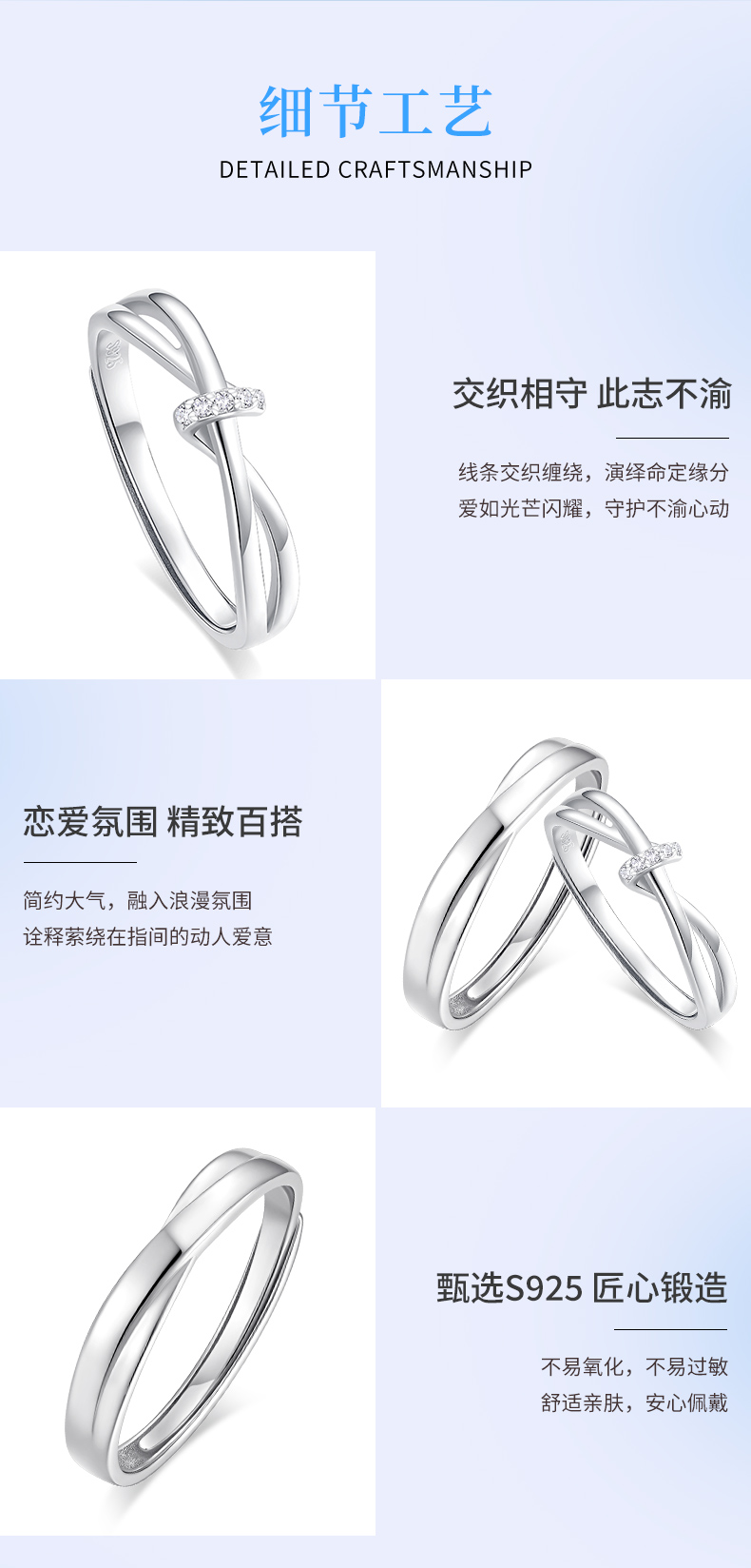 卡蒂罗/KADER 莫比乌斯环 简单爱情侣对戒 千千结可调节素圈一对 钟爱久久甜蜜告白首饰