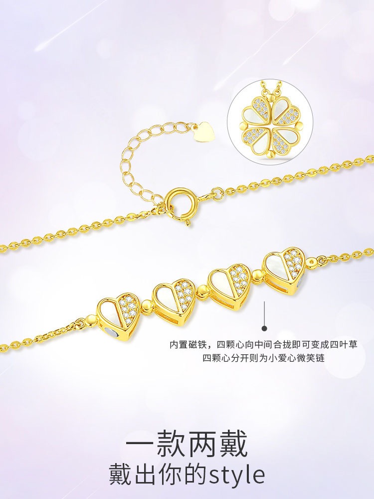 卡蒂罗/KADER 祈运四叶草项链 心动幸运草纯银镶嵌闪锆通勤百搭小众设计可拆爱心锁骨链 贝壳心形链一款两戴#好运 商品图6